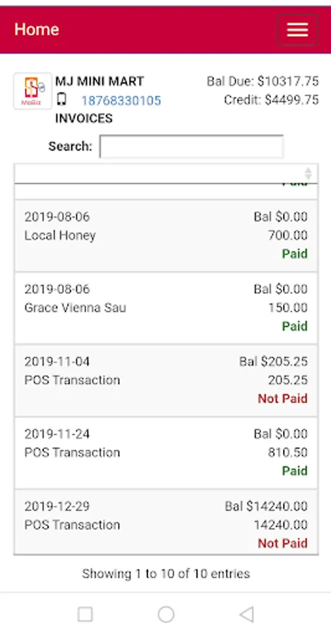 MoBiz customer app gives customers access to their accounts when business owners use the MoBiz (mobile business platform) to run their business. Customers can use the app to check on past invoices and see paid and unpaid. They can also order products etc
