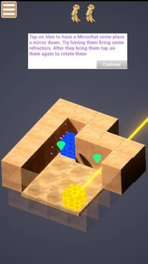 There is a mob of meerkats that need your help! Their den is too dark, its time to light it up! Help them by reflecting the light beam around the den with special lenses. Play through 20 levels of simple to learn yet hard to master puzzles. As you progress you will get access to more light bending lenses, but also more obstacles to avoid.