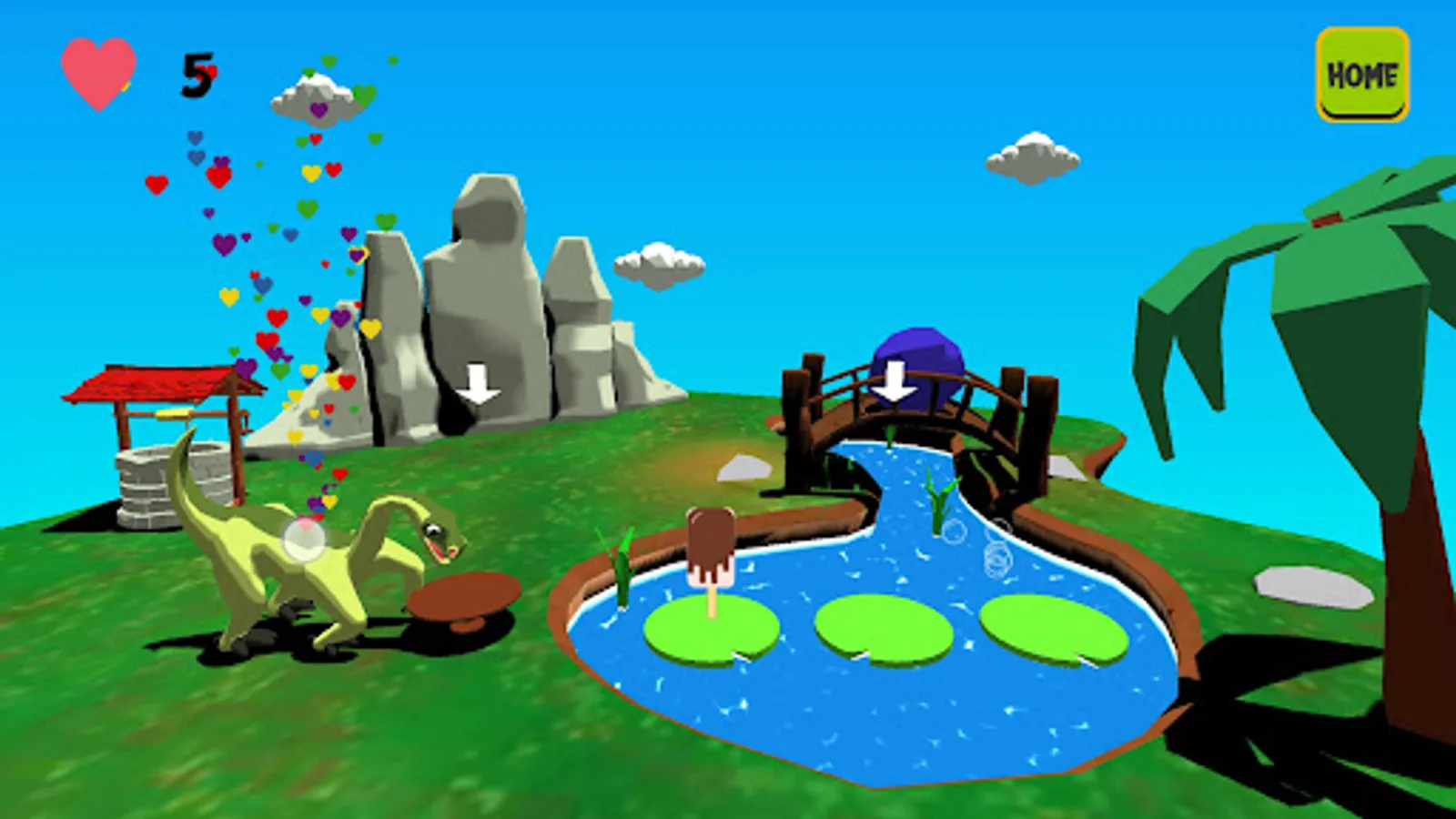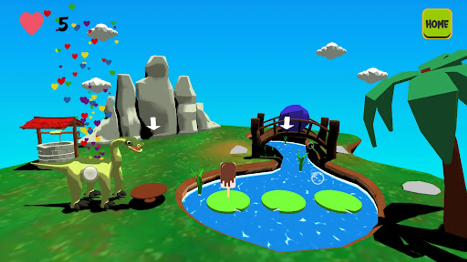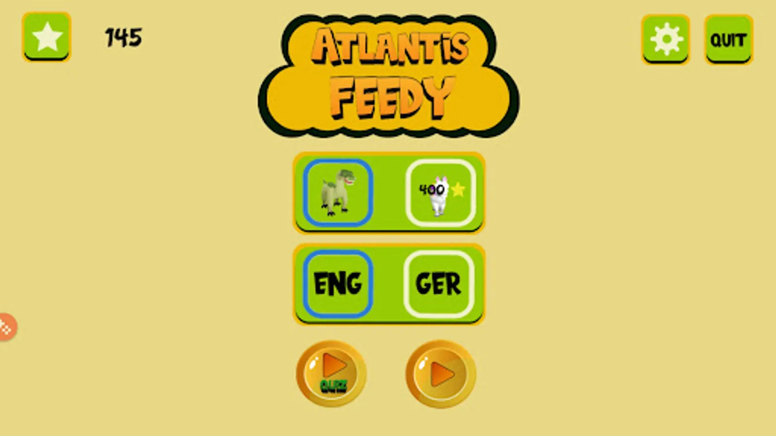 The purpose of this game is to teach basic food names in a fun way. Game can be played in English and German. There are two creature in this game, named Unicorn and Dinosaur. They are very hungry and waiting for your help. Take the food from magical lake and put the table that is in front of our friends. Feed our little friend and collect stars.