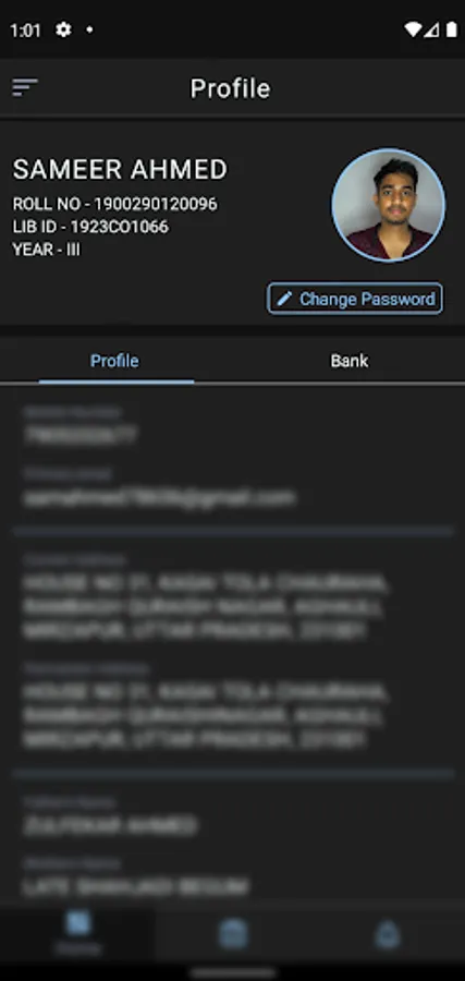 Mentor card allows students to view their entire course summary from their 1st semester to last one. Students can also fill the extra curricular activities in which they have participated to keep their record updated.