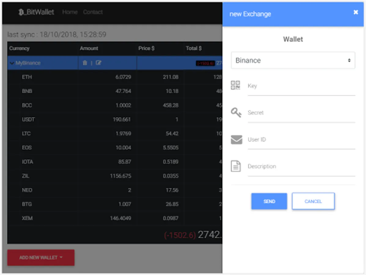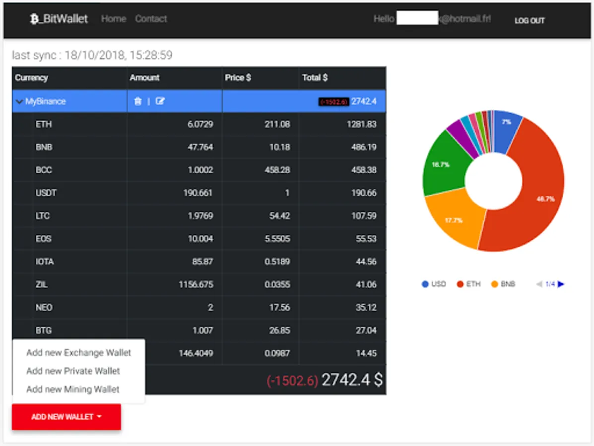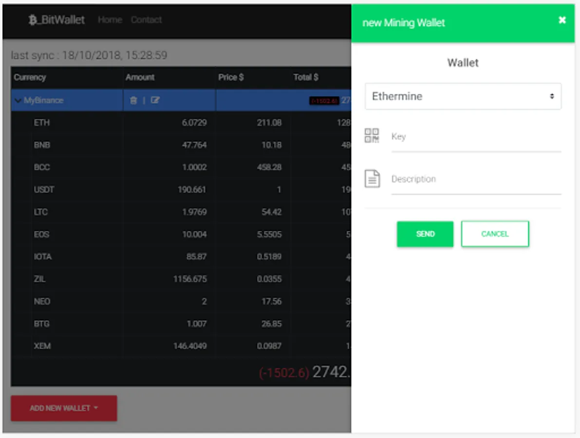 BitWallet is the best way to get all your balances in exchanges with their last price ,wallets and mining pools, however platform (PC, Tablet or Smartphone).