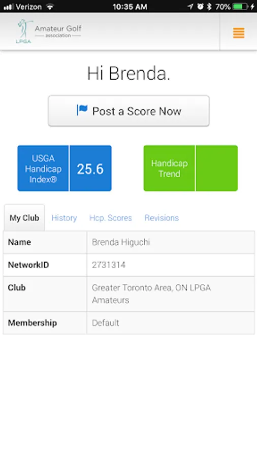 LPGA Amateur Golf Association score posting and Handicap service for members only. Use this app to post scores to your GolfNet Handicap profile, look up a golfer’s Handicap Index, compute your Course Handicap, view round statistics, search for courses in the US and Canada and more. Not a member? Learn more about membership at LPGAAmateurs.com.
