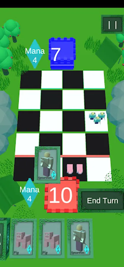 A simple, medieval fantasy themed board game. Drag your cards onto the board to spawn minis to do your battle! Destroy your opponent's castle to win!