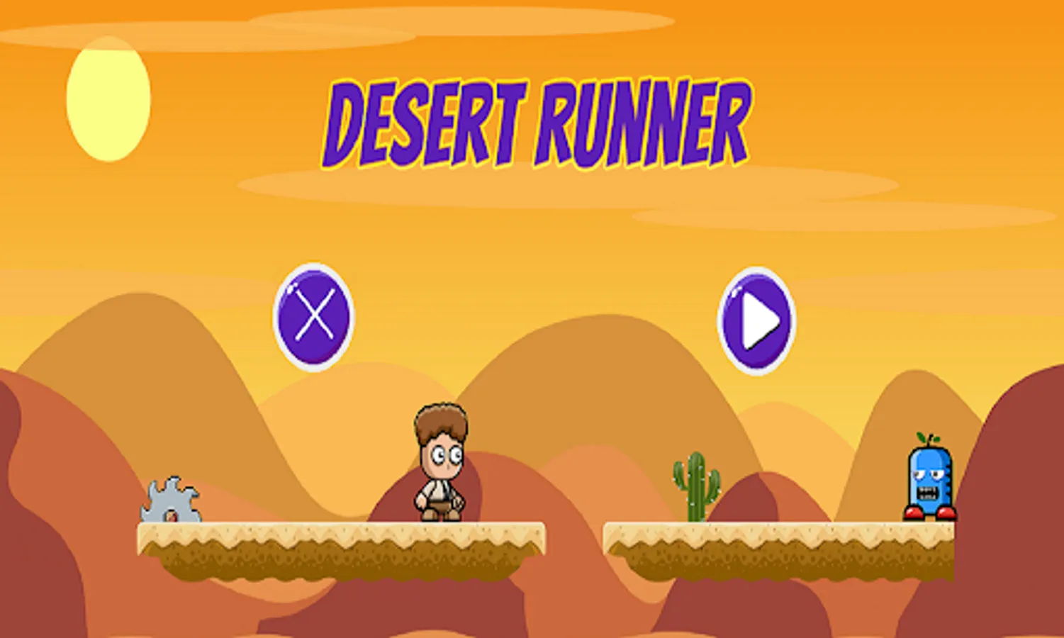 Desert Runner - це гра у якій хлопчик біжить по пустелі, і біжучи він має перескакувати перешкоди