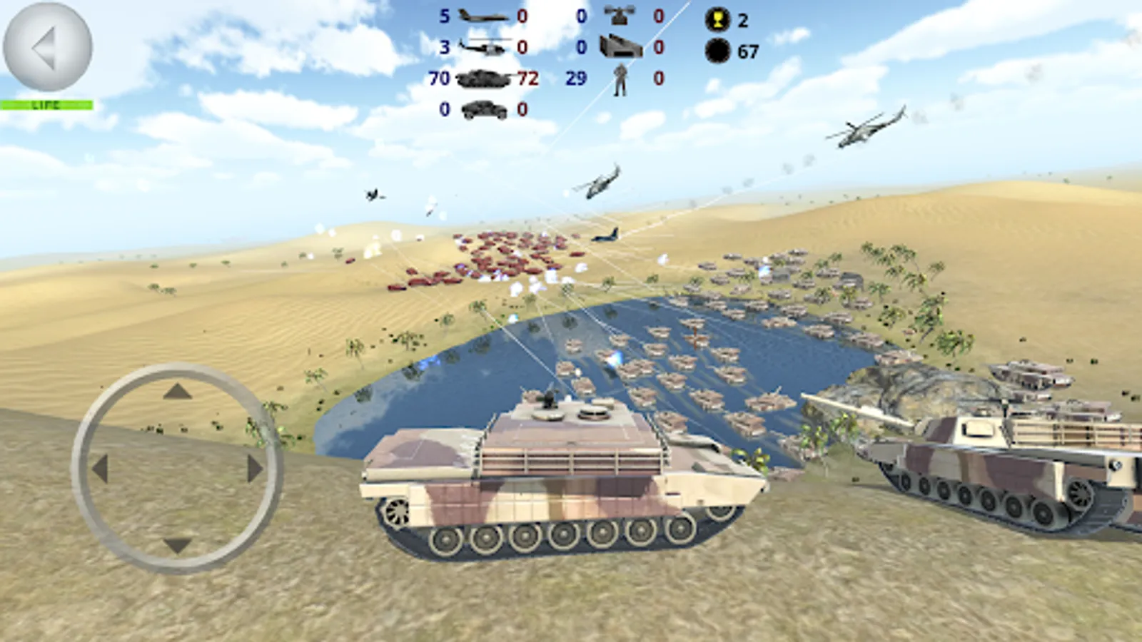 -Aerial battles between aircrafts, helicopters and anti-aircraft.