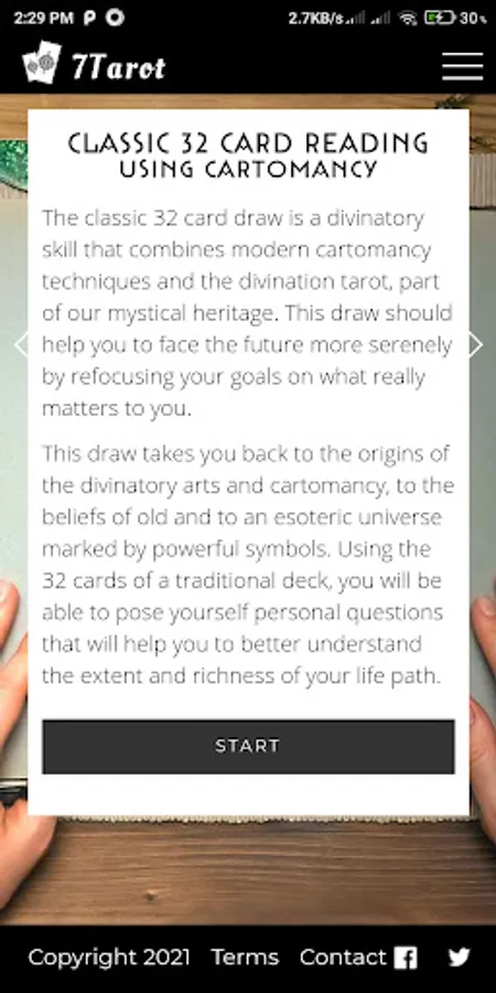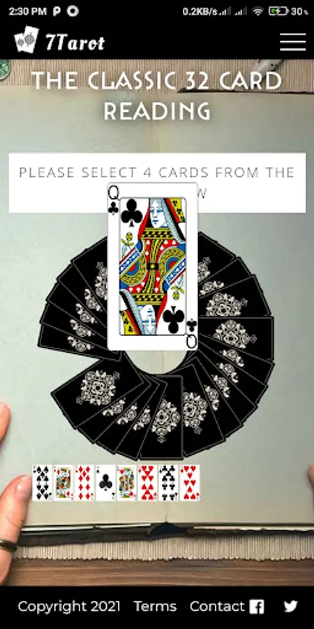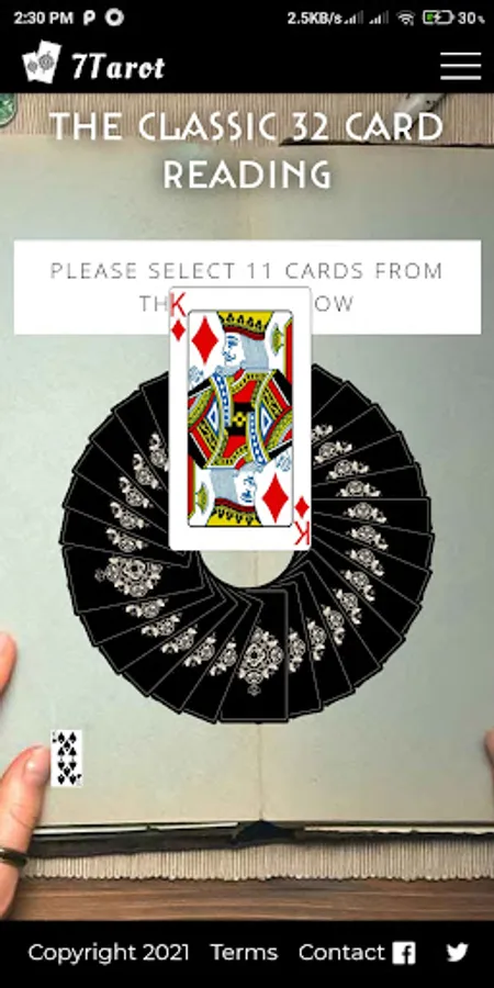 This draw takes you back to the origins of the divinatory arts and cartomancy, to the beliefs of old and to an esoteric universe marked by powerful symbols. Using the 32 cards of a traditional deck, you will be able to pose yourself personal questions that will help you to better understand the extent and richness of your life path.