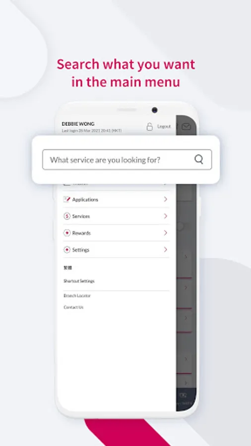 • Transfer and Payment history – One touch to view your transfer and payment history, which helps you monitor your spending trends