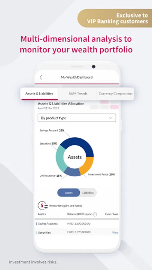 • My Wealth Dashboard – VIP Banking exclusive feature gives you multi-dimensional analysis to monitor your wealth portfolio
