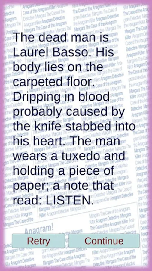 Dive into the mystery of the murder of Laurel Basso. Help Margana solve the case by finding the missing words in this new word puzzle game from Moblei.