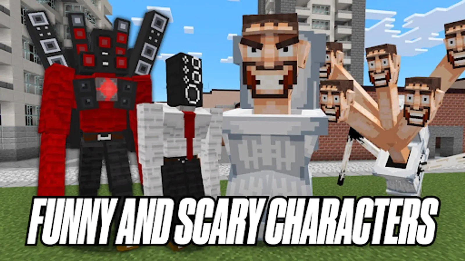 In the virtual universe there are many monsters that constantly climb into battle and try to destroy everything you have. Heroes Skibidi Vs Cameraman Mod MCPE at first glance may seem funny and harmless, because these friends look quite strange, but as soon as you get to know them better, you can regret it. They are not your friends, but those who can ruin your whole vanilla survival. Battle them will not be easy, but thanks to craft recipes, weapons and your ingenuity you will be able to destroy the strongest enemies from Skibidi Toilet Mods Minecraft and secure your adventure.