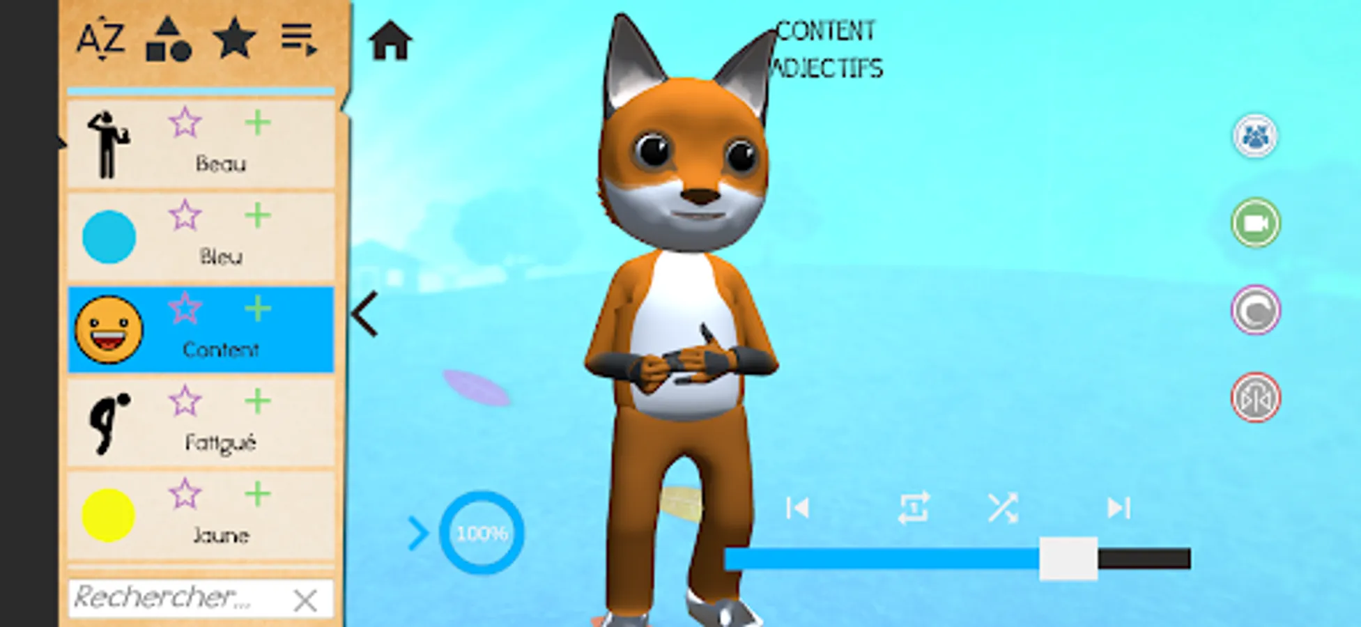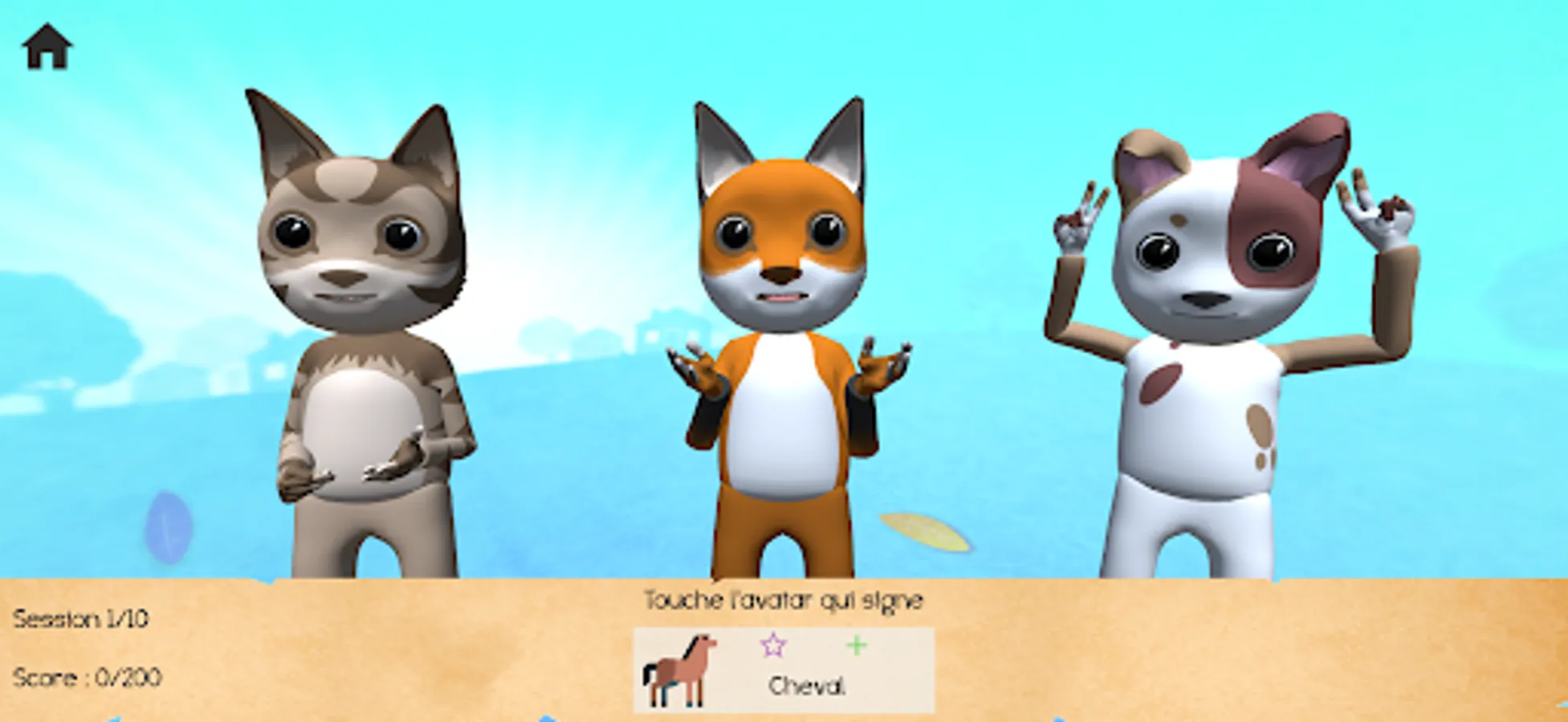 Several mini-games are available to help you practice your vocabulary. The mode "Guess the Sign" will ask you to choose the right sign made by the avatar. And the "Guess the Word" mode will ask you to choose the avatar that performs the requested sign.