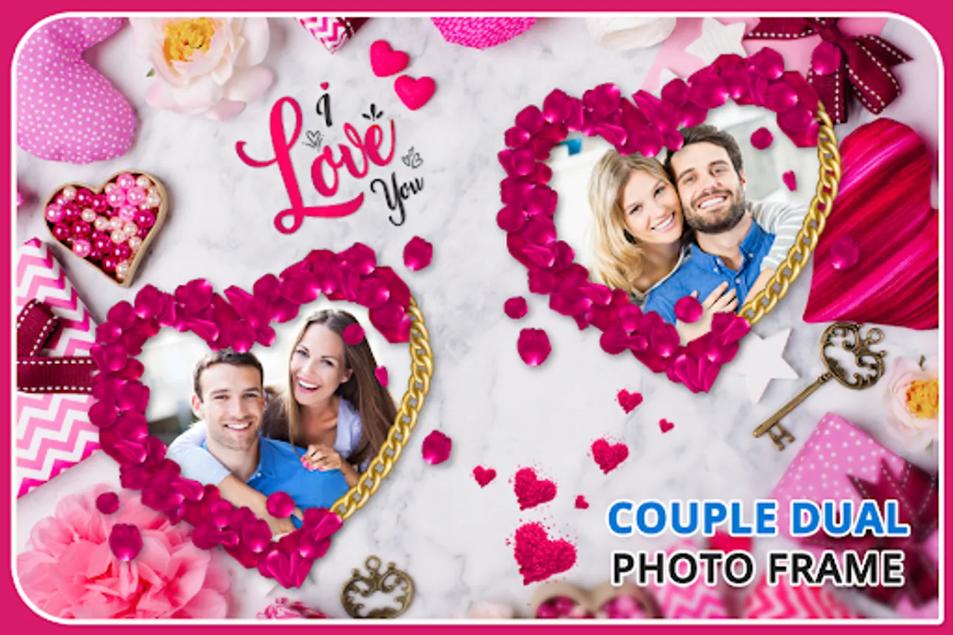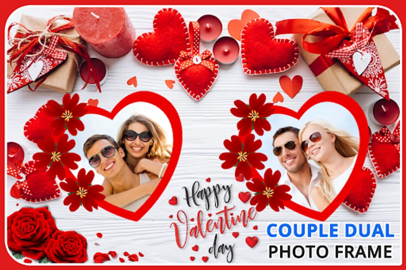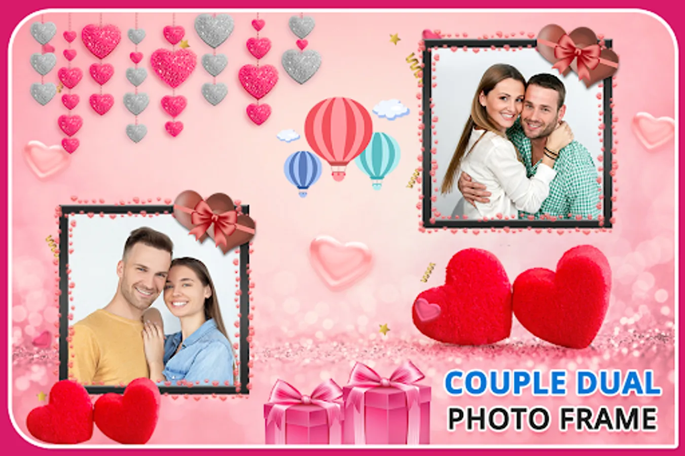 There is a huge collection of Couple dual photo frames, that will make you feel like you are in the beautiful Couple. The Couple Photo Frame app is making of your photo with many Couple frames.