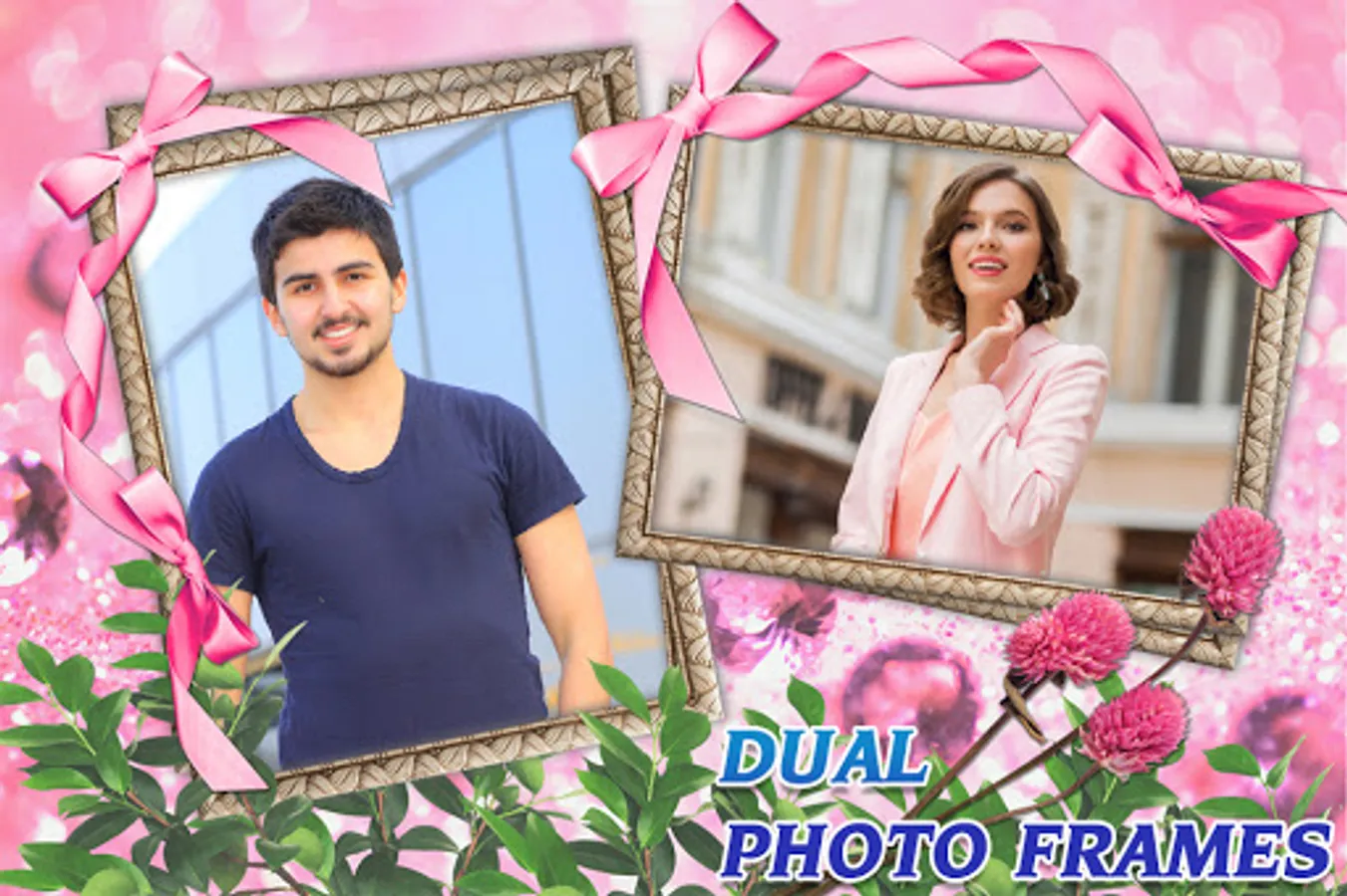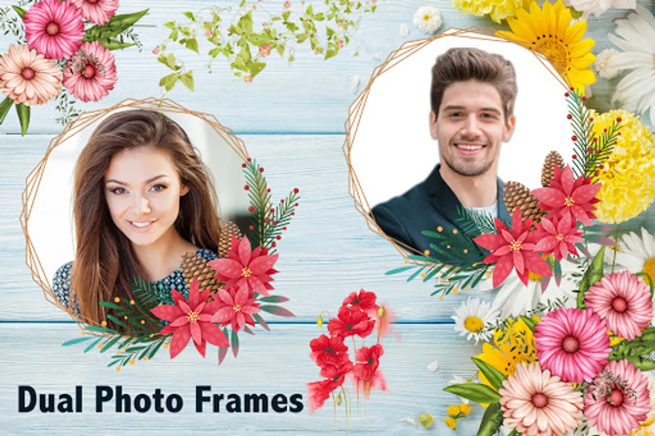 ☻ You can set Dual photos of your and yours love forever in frames to make flower couple photo frame. You can also either edit your photos with frames and other photo effects, by selecting photos from mobile gallery or you can use to click photo directly along with the frames.
