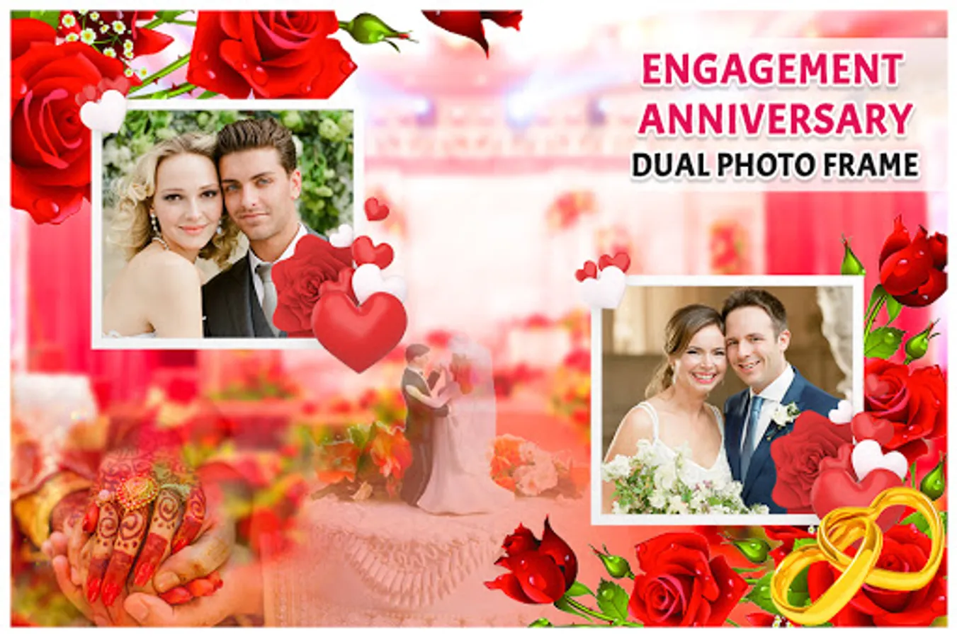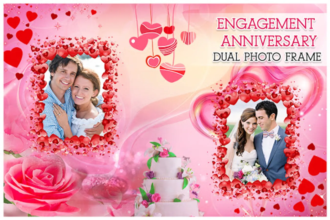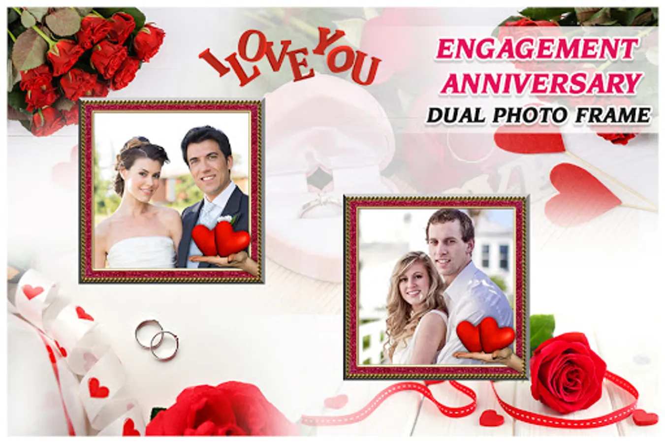 Engagement Anniversary Dual photo Frame app make your Engagement Anniversary Dual photo look fantastic and more beautiful, lots of nice frame type like flower ,love frame beautiful scene , lovely frames make photo more gorgeous. Make an adorable photo so easily and let you have some fun activity with your friends and relative.