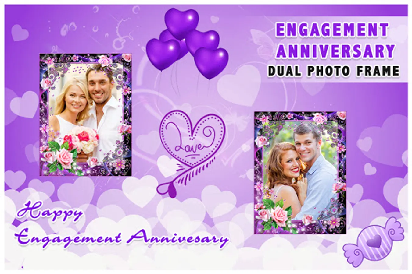 Free Engagement Anniversary photo frames for quick download. Easy to use format. Different beautiful Engagement Anniversary frames available for you to choose from to decorate your Engagement Anniversary pictures