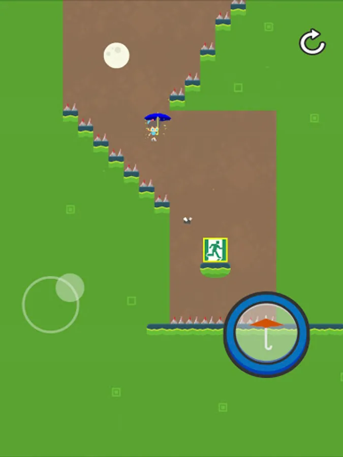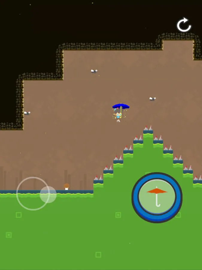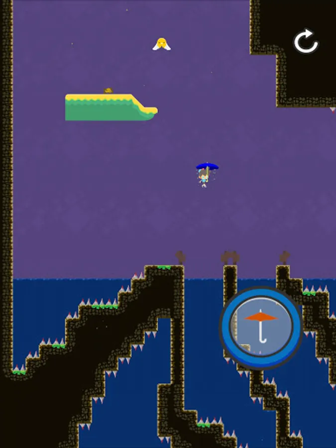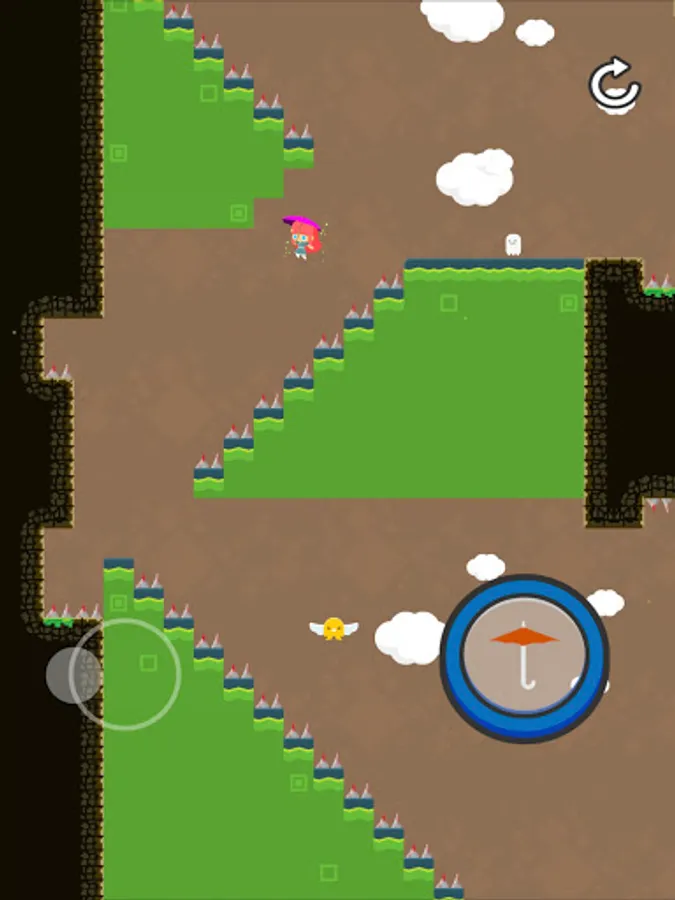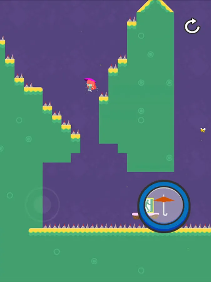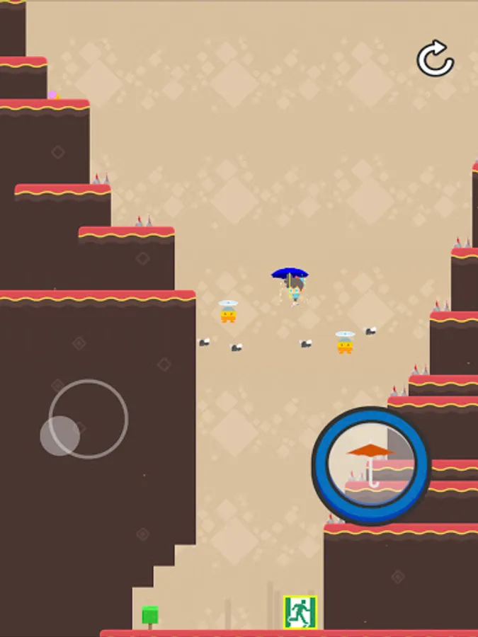 Drag to move through challenging levels. Press the umbrella button to float through the air.