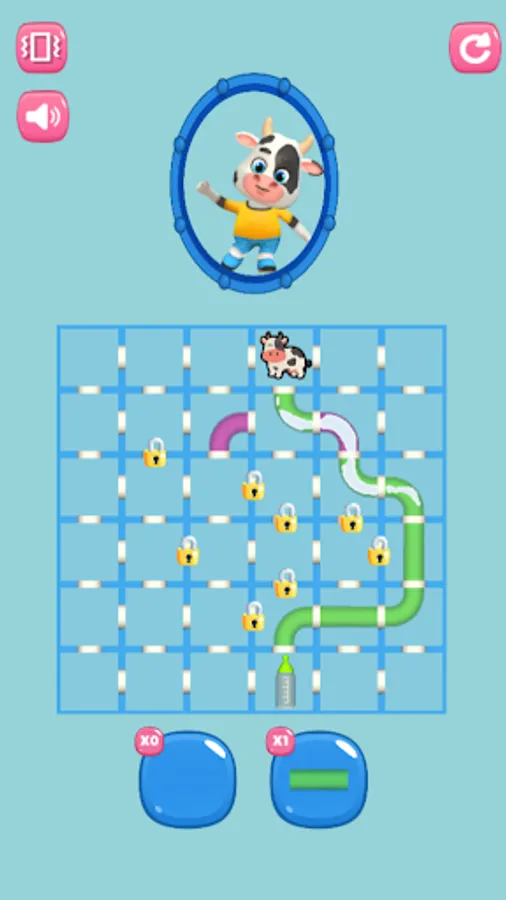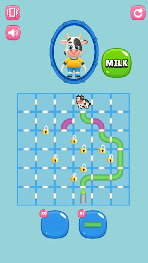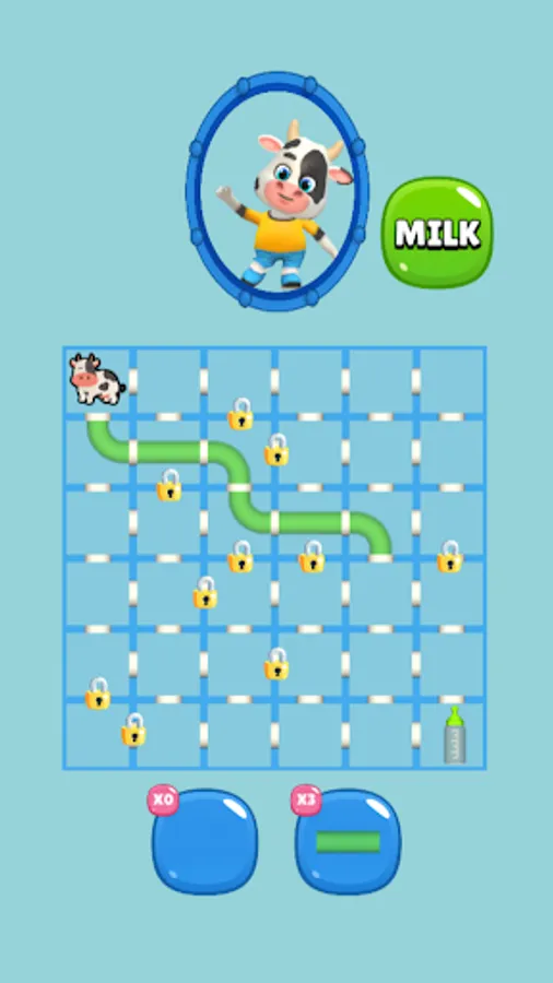 Our lovely friend is very sad when his bottle is empty. Because this cuddly sweet creature is addicted to milk. You must deliver the milk of the mother cow by placing the pipe pieces on the grids correctly.