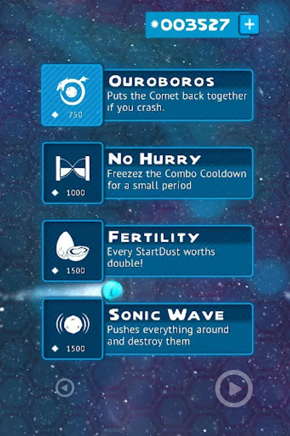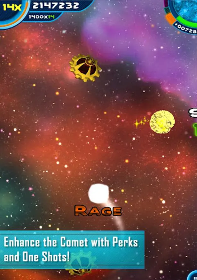 Use of gravity and Physics are very important part of the game. You can use gravity to navigate around the space, orbit the planets or just to reach some very nice pickups which you need to obtain by spending some stardust. This is a unique usage of the gravity and Physics in such a high paced game! You will also find a lot of meteors to crush all over the galaxy, tons of asteroids to demolish and again sweet gravity to avoid the mighty hyper-nova! You'll face all kinds of dangers of space, Rosetta, and need to get rid of them!