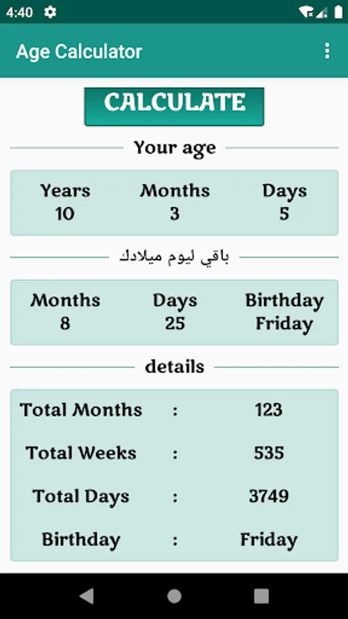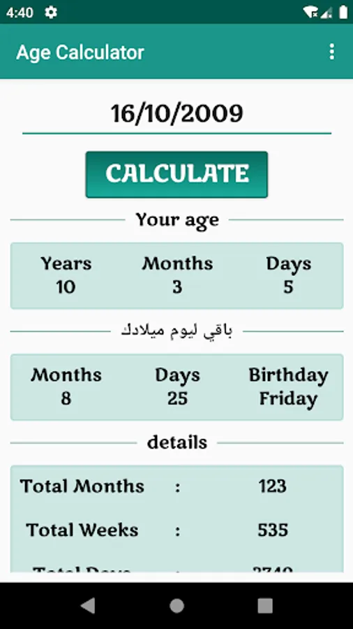 Calculate your age, an application that calculates the age in detail according to the Gregorian calendar