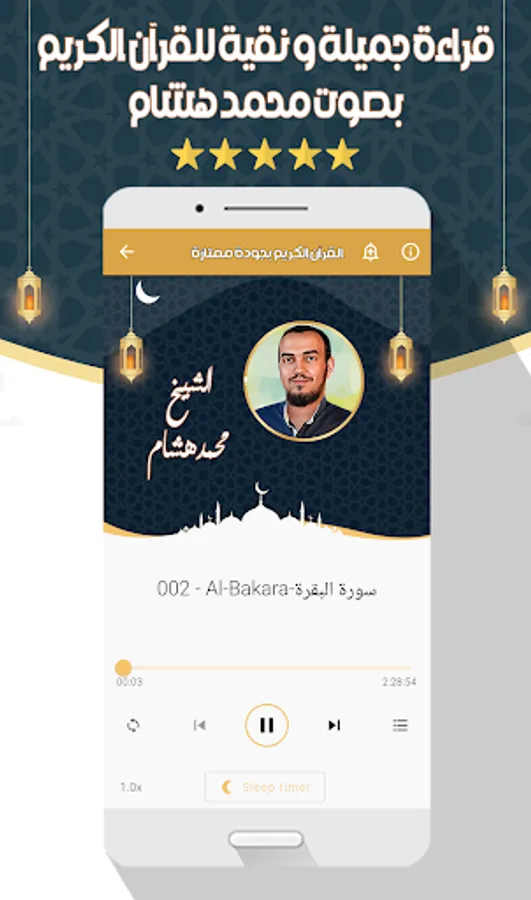 The Qur’an with the voice of Muhammad Hisham is free and available on the store for Android phones. In order to enjoy the recitation of the Noble Qur’an and live a wonderful state of faith in which you delve deeper into the meanings of the Noble Qur’an, enjoying the voice of the reciter Muhammad Hisham, who transports you to another world with his distinctive voice.
