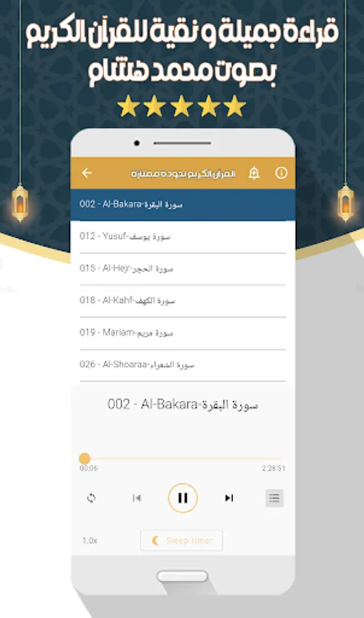 After downloading the application, you can listen to the surahs of the Noble Qur’an with the voice of Muhammad Hisham for free, anytime and anywhere with ease.