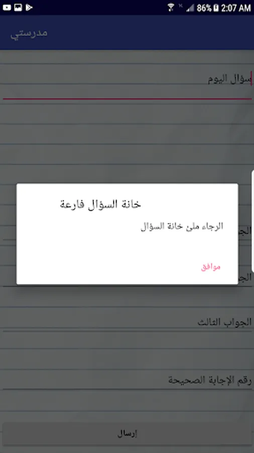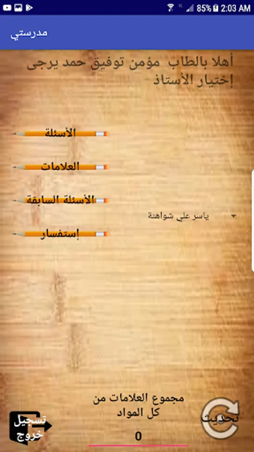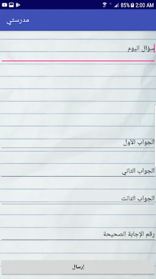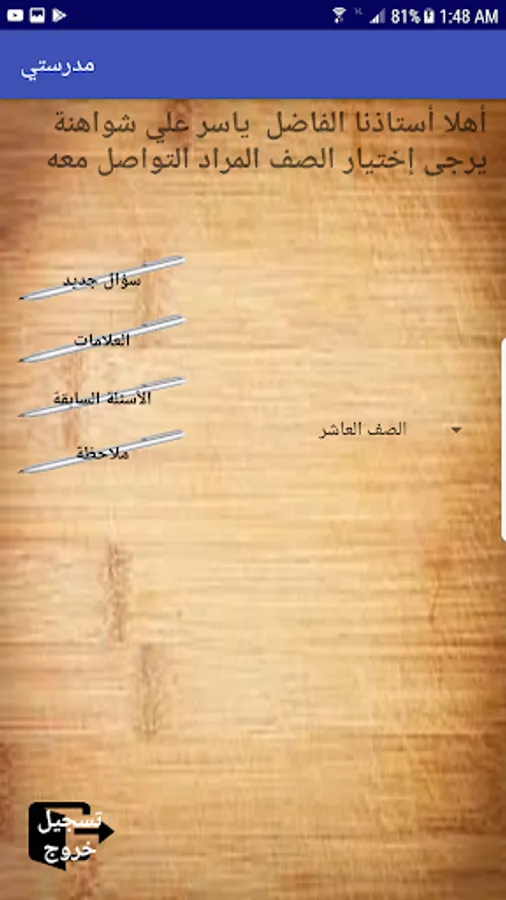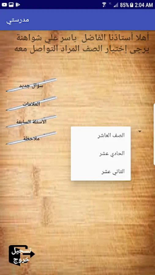 This application can ask the teacher a question -mn option of multi-students a wool studied so that it may select a row in advance ... shows the type of question with the choices on the student Face the student to answer him ..oicom Bakhiar One answer Almrsh with question .. If His answer was correct, the program will automatically raise the student sign