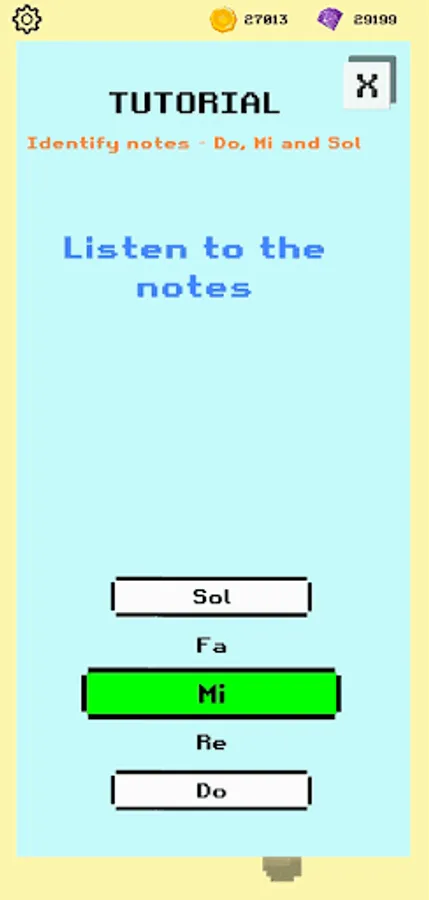 The game can be used to practice ear training at any level, starting from one-note identification, and getting harder as the game progresses, through two-note recognition, three note (triad) chords, and four-note chords.