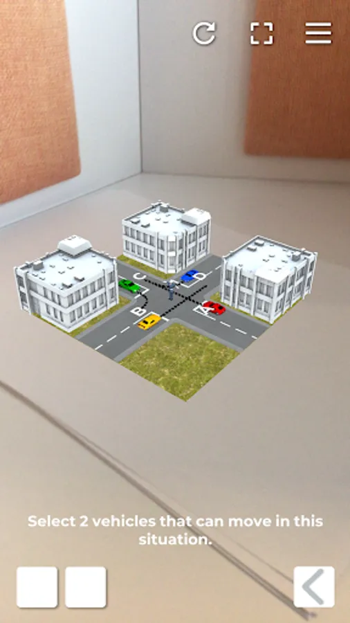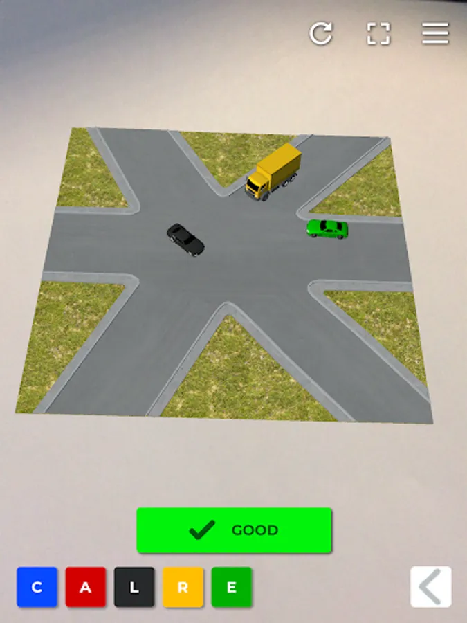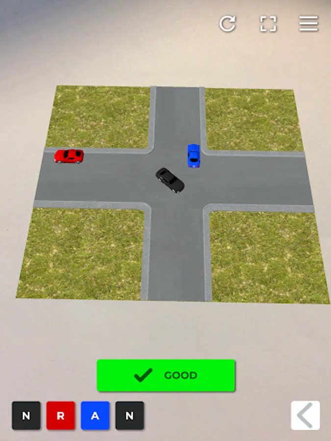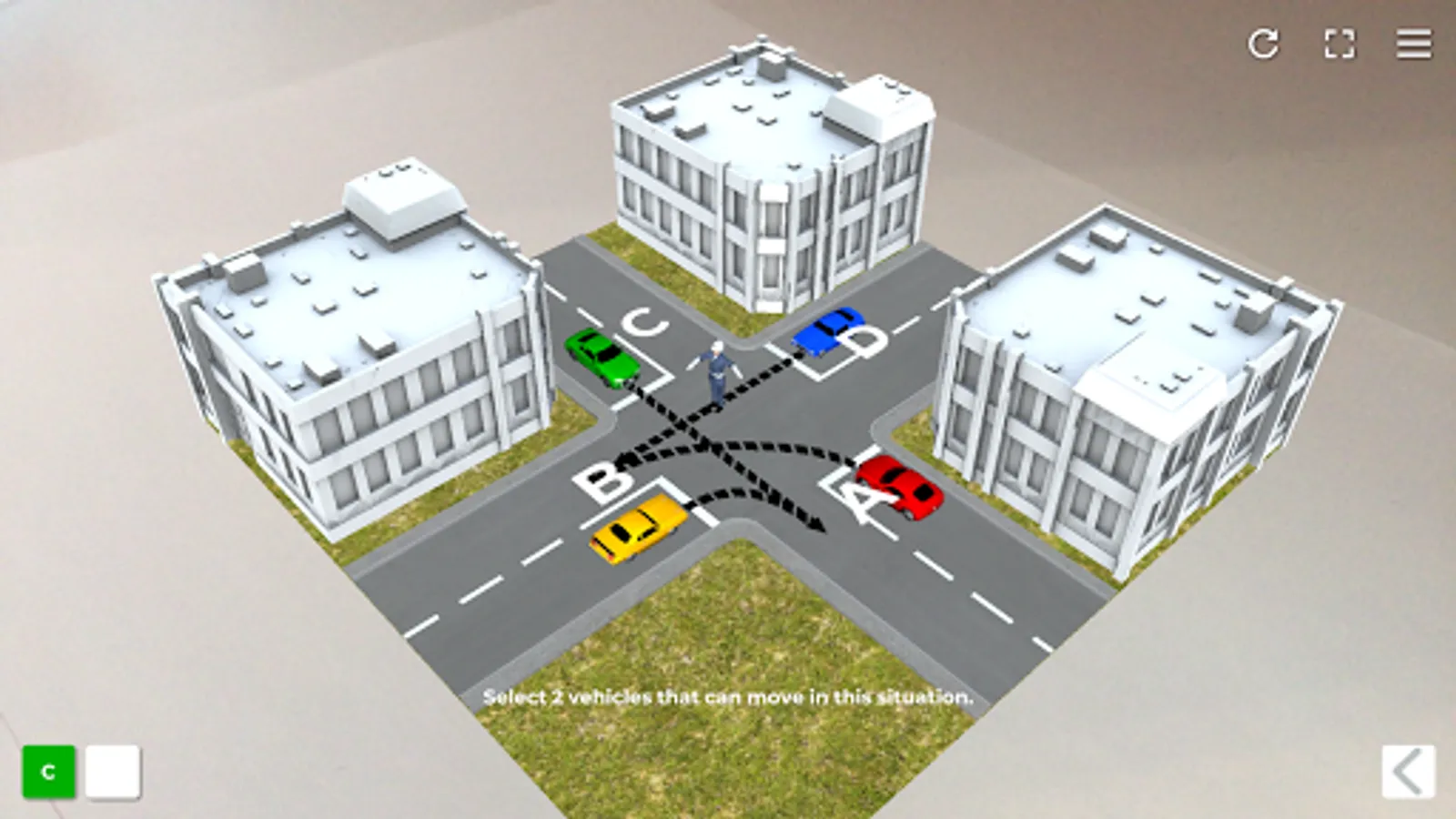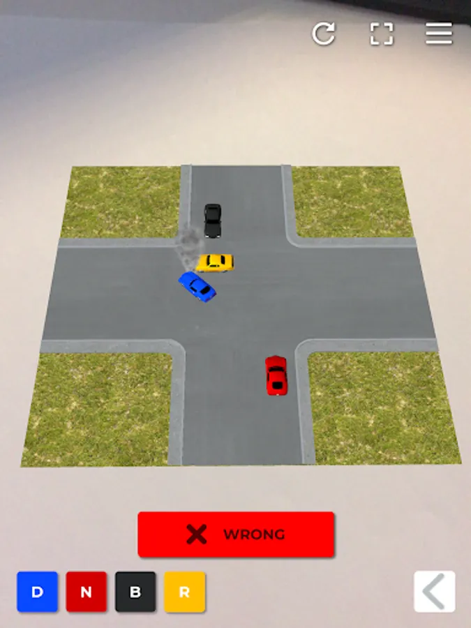 Crossroads, real street scenes, a car panel made with an interactive augmented reality app for the theory lessons for the B and A license. You can really act and take part in the scenarios and situations created.