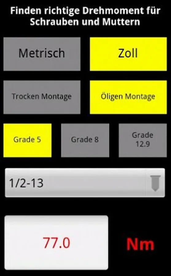 Find an application, the correct setting of the torque screws and nuts, which are lubricated with oil both for oiled joints, and joints.