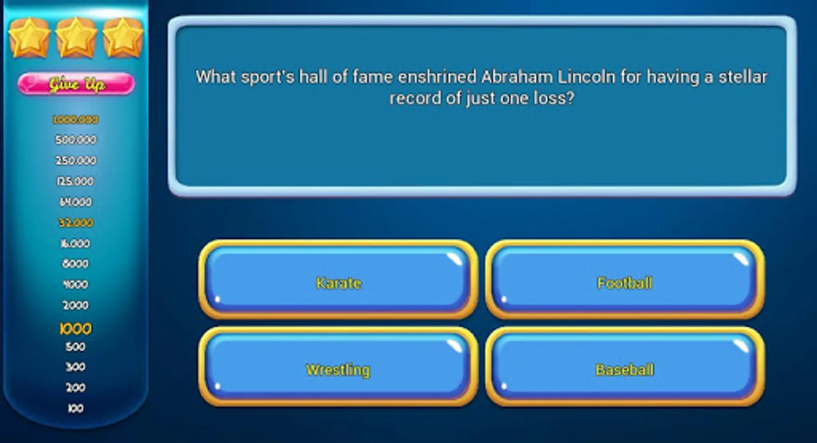 Quiz & Trivia game, where the objective is to become a millionaire. Test your knowledge and answer a set of randomly selected questions from various categories and win!