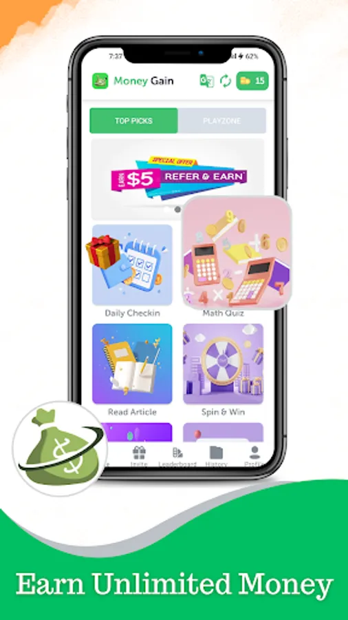 Spin to Earn Coins: Spin the wheel of fortune on Money Gain and watch your coin balance grow. Every spin rewards you with coins that can be redeemed for real cash or used to unlock exclusive features within the app. Spin, accumulate coins, and enjoy the rewards. 🎡💰