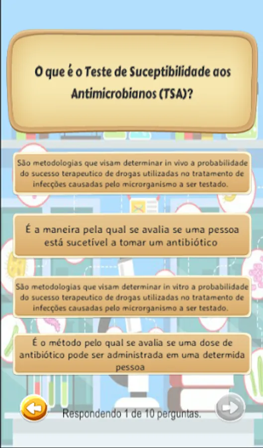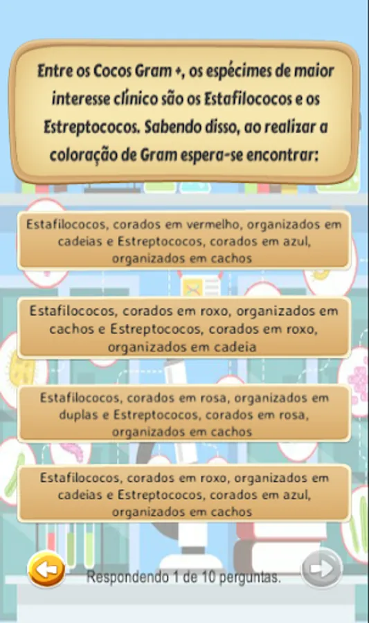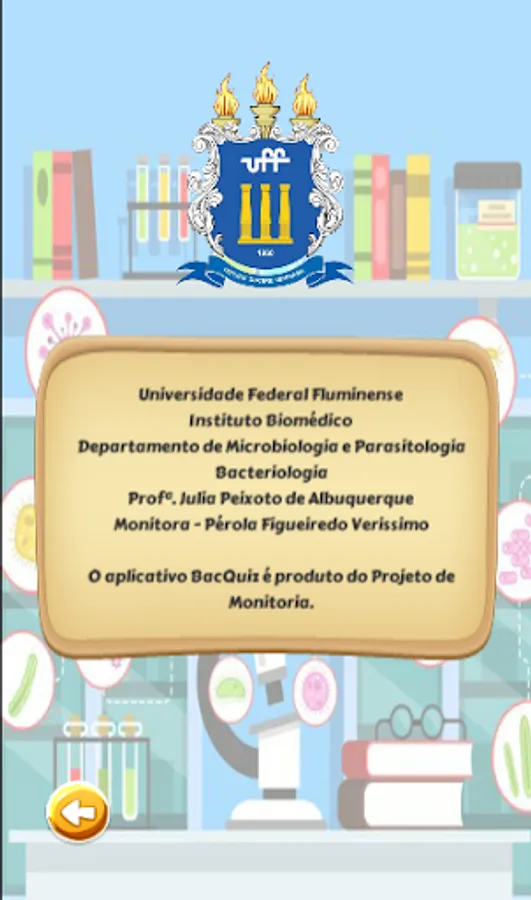 The application was developed as a product of the monitoring project of student Pérola F. Verissimo, under the supervision of Professor Julia Peixoto de Albuquerque, for the discipline of Bacteriology of the Fluminense Federal University of 2019. The application contains interactive questions about the contents taught in the practical classes of the discipline.