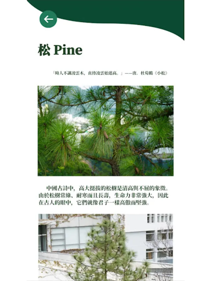 "ECF: Plants and Ecological Conservation from Literary Works" is an environmental education and community participation project organized by the Faculty of Life Sciences and the Department of Curriculum and Instruction of The Chinese University of Hong Kong and funded by the ECF. Cooperating with the plant unit teaching materials of the Chinese language course, it can enhance teachers and students' understanding of different plants, their habitats and related conservation issues, so as to improve their conservation awareness, and this application is one of the projects. AR plant models and videos can increase learning interest and improve students' learning motivation, thereby enriching students' understanding of common plants in Chinese literature.