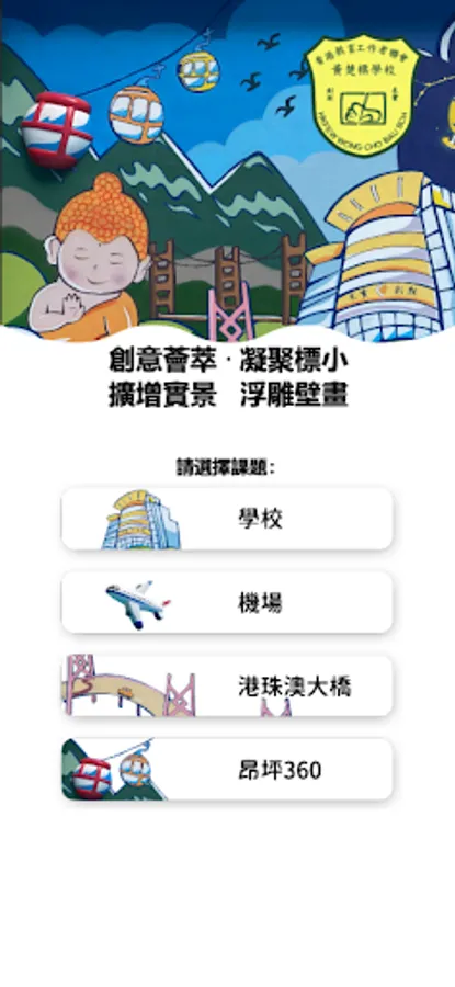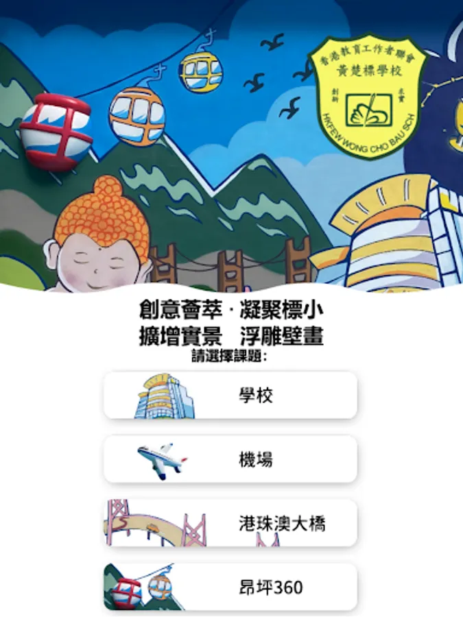 One of the important concepts of art education in our school (Hong Kong Federation of Educators Huang Chubiao School) is that art is in life, and art is to make people appreciate and discover the beauty in life. Our school is located in Tung Chung, Lantau, and there are many traditional attractions, such as: Tung Chung Fort, Heart Sutra Jane Forest, Big Buddha, etc. In recent years, the government has also vigorously developed the area, and a number of large-scale economic and tourism infrastructure projects have been completed, such as the Hong Kong International Airport, the 360 Cable Car, the Hong Kong-Zhuhai-Macao Bridge, and Disneyland. The combination of tradition and modernity gives Lantau a new character. Therefore, our creation combines painting and music with innovative technology (AR technology) to present a new scene of Lantau Island in a new art form. The software selected four 3D models of scenic spots as the theme, namely: the school building, the airport, the Hong Kong-Zhuhai-Macao Bridge and the Ngong Ping 360 cable car. In addition to the school building, other AR attractions include corresponding content introductions and knowledge of STEM education. For each attraction, the students of the school will compose the corresponding music, and a quiz game about related STEM knowledge will be added to increase users' understanding of Lantau Island.