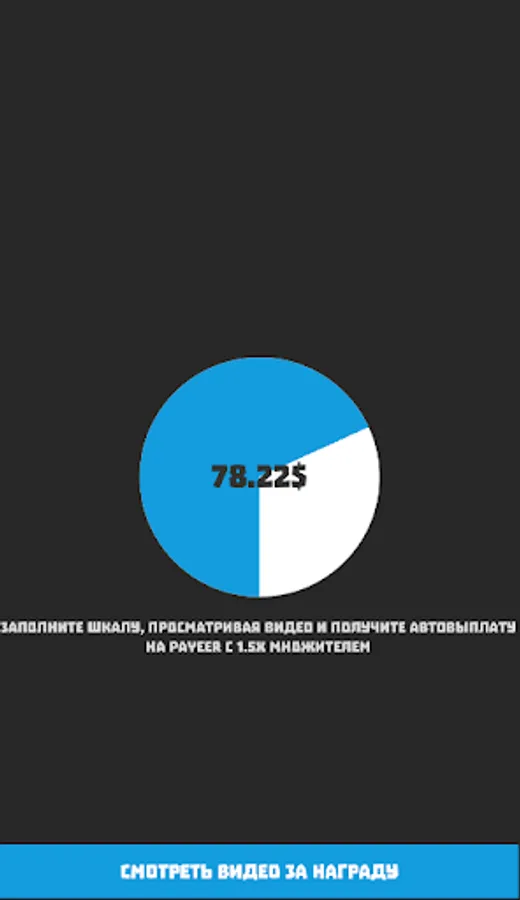 Easy Money - легкий заработок на просмотре рекламы с авто выплатой на payeer. Выбирай стартовый множитель заработка 1.5х или 5х заполни шкалу что бы получить авто выплату на паер. Авто выплата будет умножена на выбранный множитель.