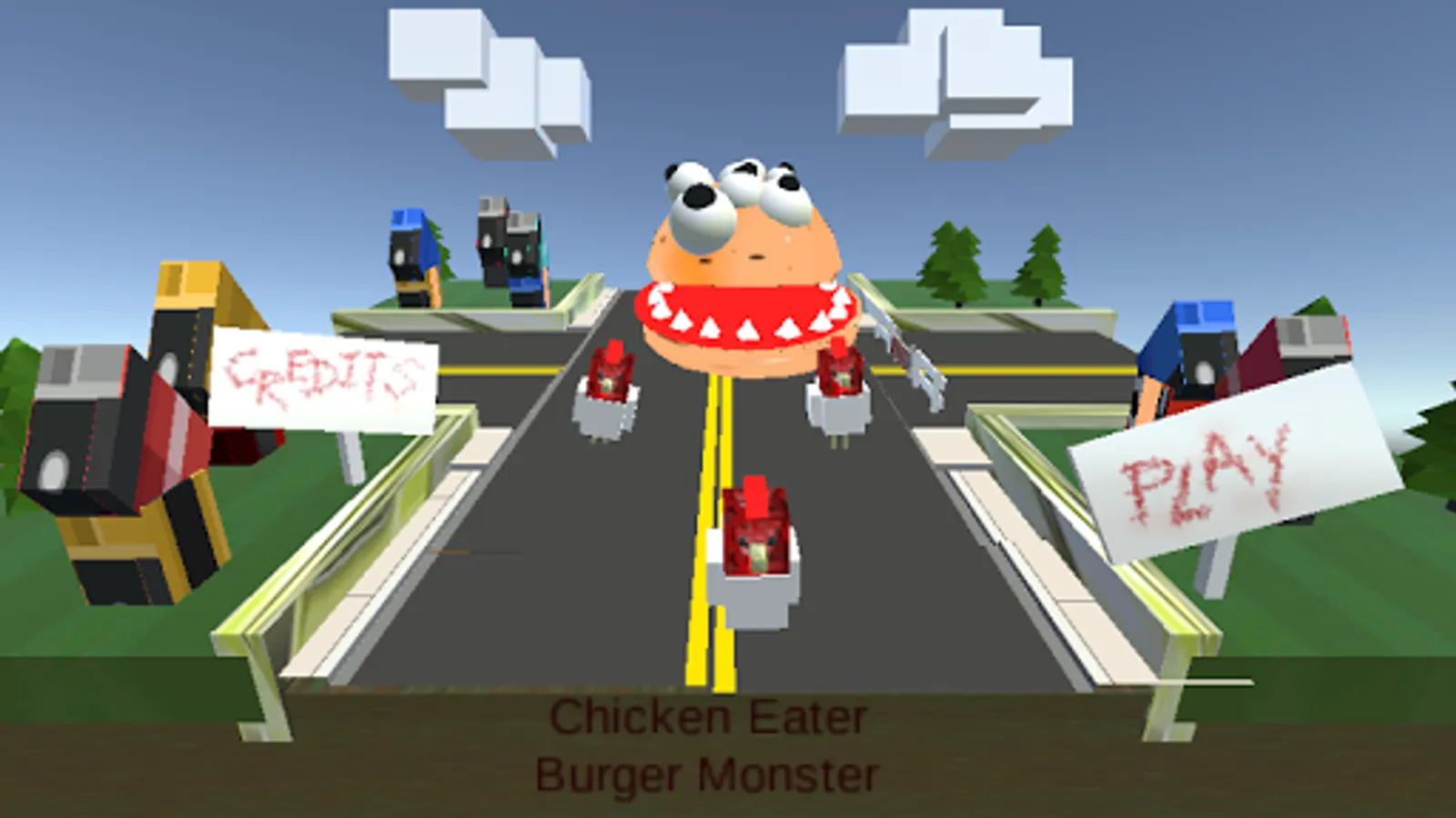 In order to protect earth, a young scientist made a Serum that can make "any thing" stronger and huge to destroy those "Diabolical Birds of Destruction"... But the serum accidently falls on a Burger... It made the Burger gigantic and it came to life... Bloodlusted....! Hence the Hungry BloodLusted Burger Monster wants to eat the Evil Chicken and it destroys everything that comes in its path!