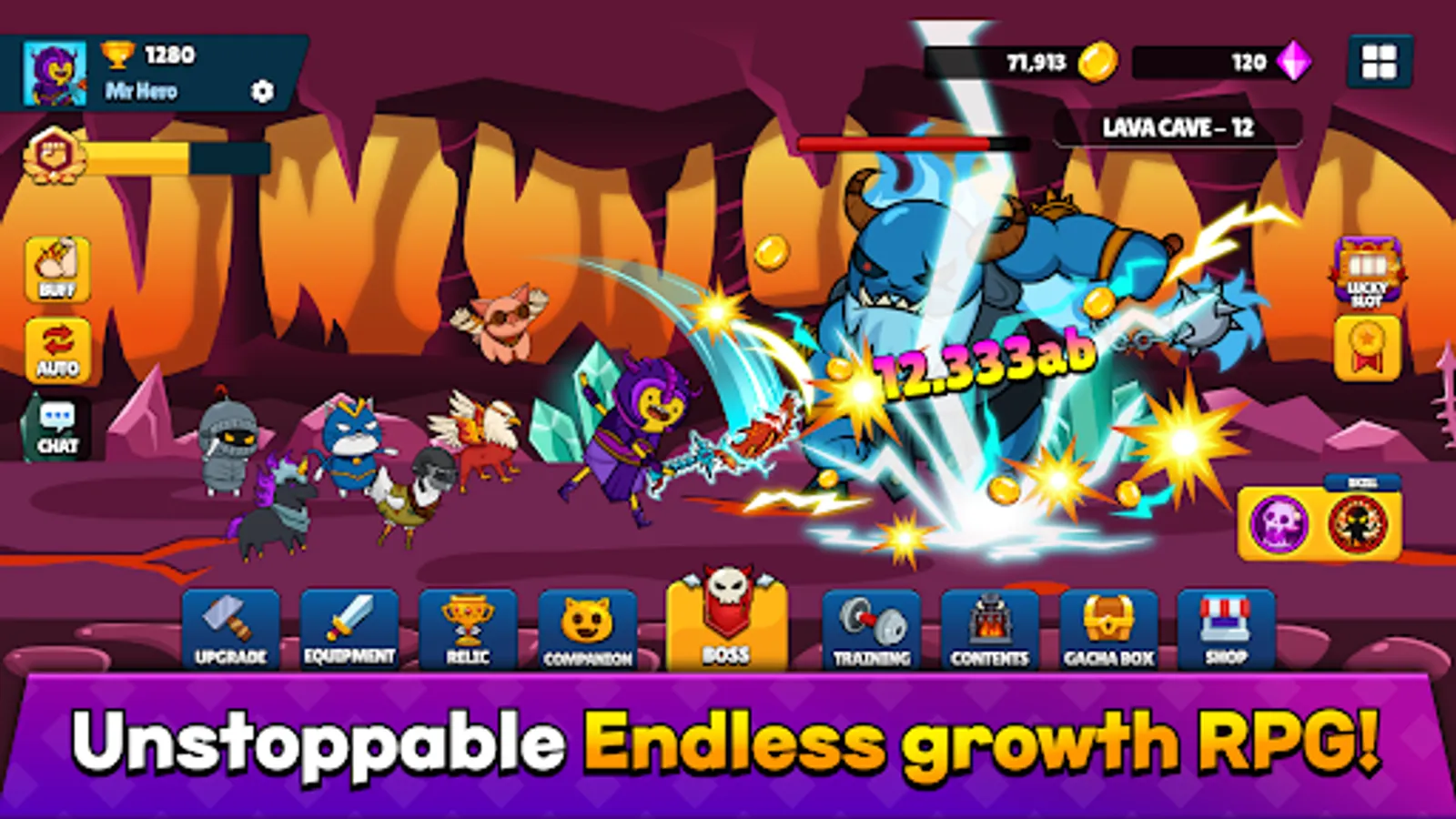 Mr. Hero is a sense-immersing, easy-to-play RPG with an idle and collective interface.