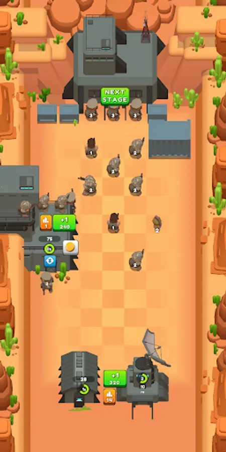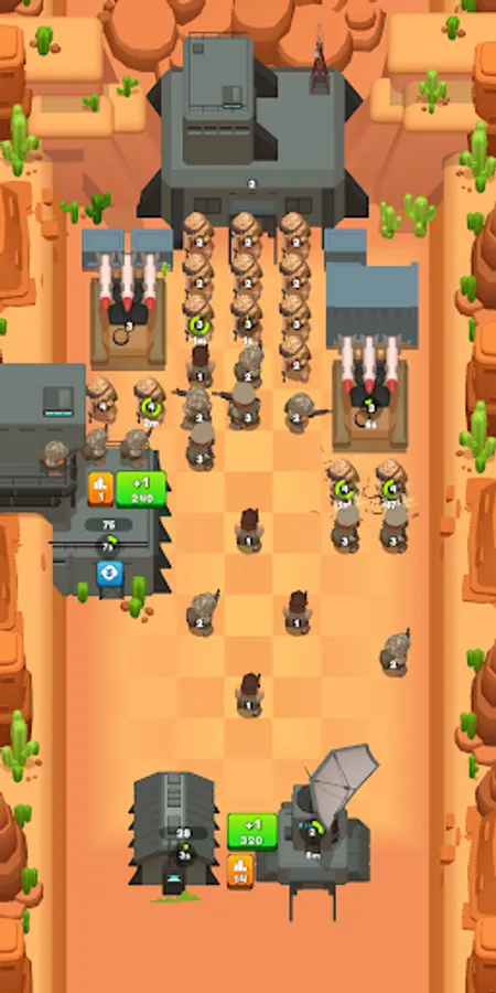 This is an idle merger game about building your small military into an empire. Hire soldiers to defeat enemy troops, collect resources, unlock factories, and upgrade your military base.