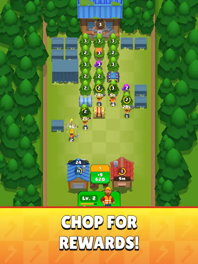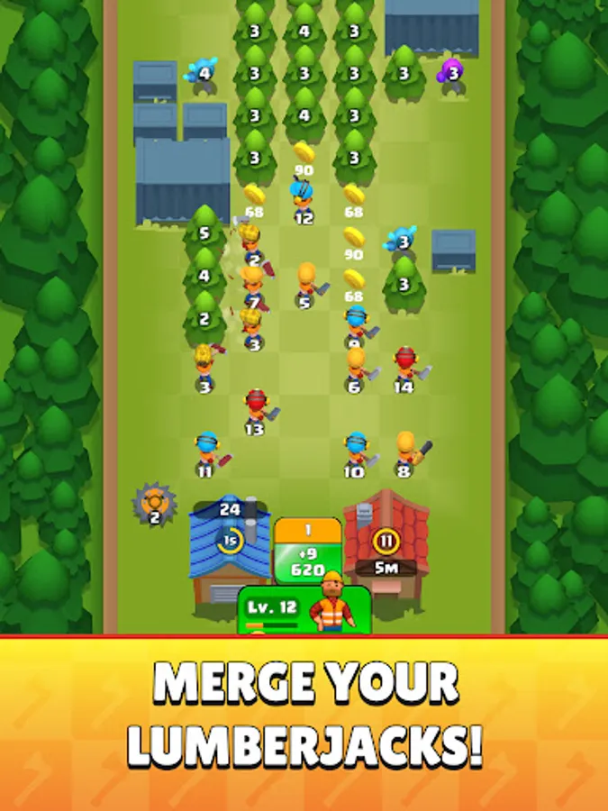 Welcome to LumberVille, the captivating idle tycoon merger game where you transform a modest lumberyard business into an empire. Hire skilled lumberjacks, chop down trees, collect resources, and unlock factories to skyrocket your income. Merge resources strategically, master economy management, and watch your wealth grow like a towering oak tree.