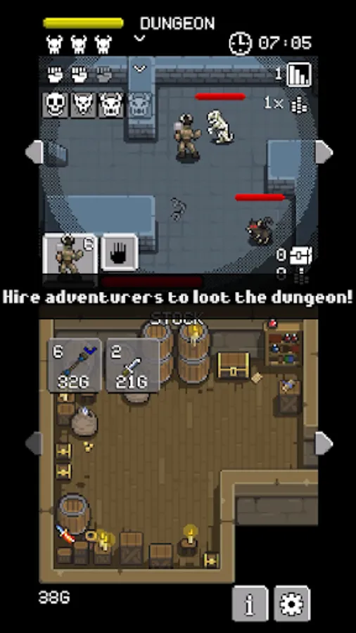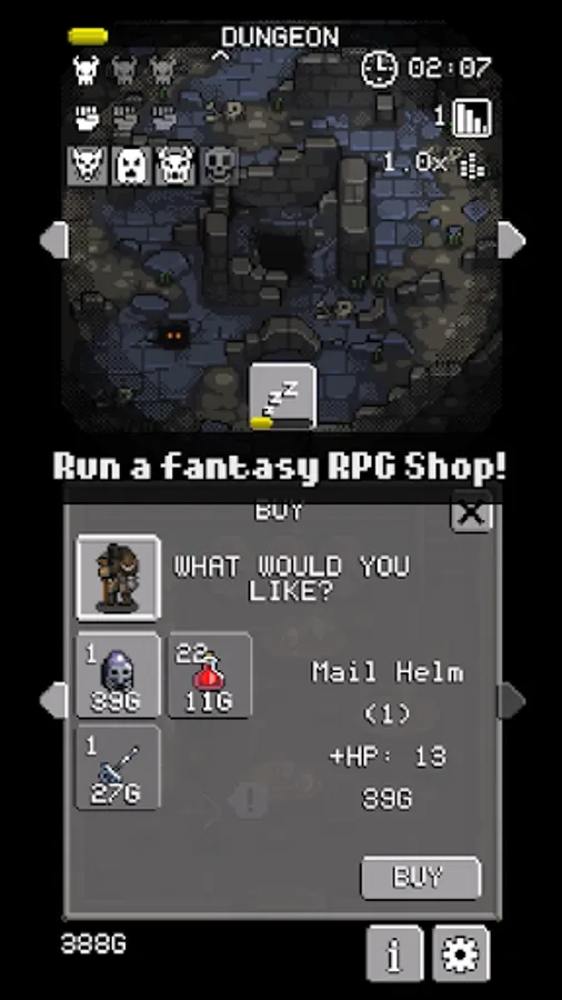 Buy and sell weapons, armour, potions and more to grow your humble shop. Hire adventurers and equip them with items before sending them into the dungeon to collect gold and loot for you. You've got a debt to pay to the king and in order to pay it, you're going to have to buy low, sell high and hope your hired heroes make it out alive.