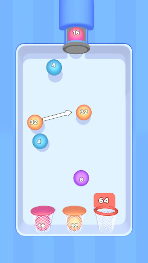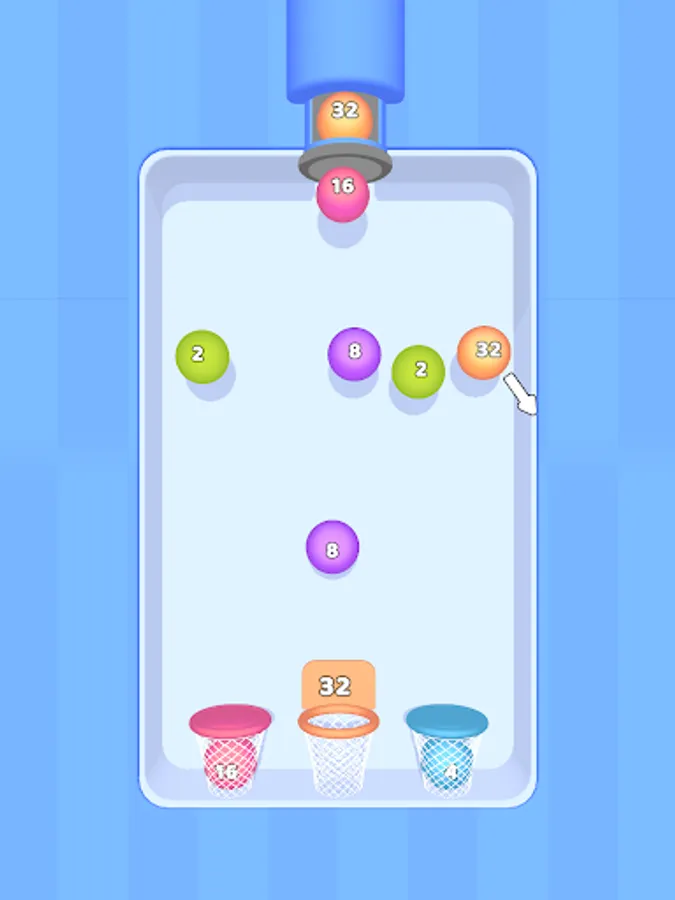 Merge the balls and try to get them into the right hoops