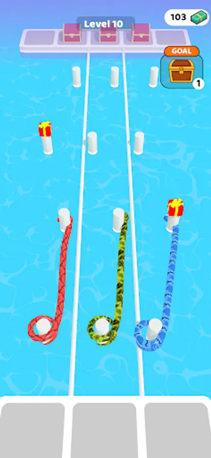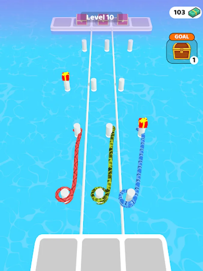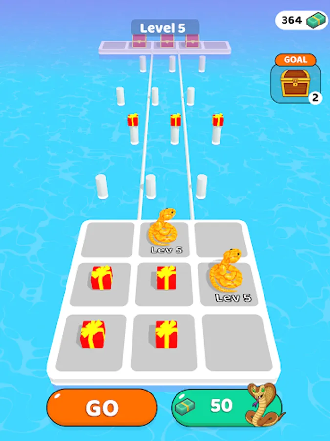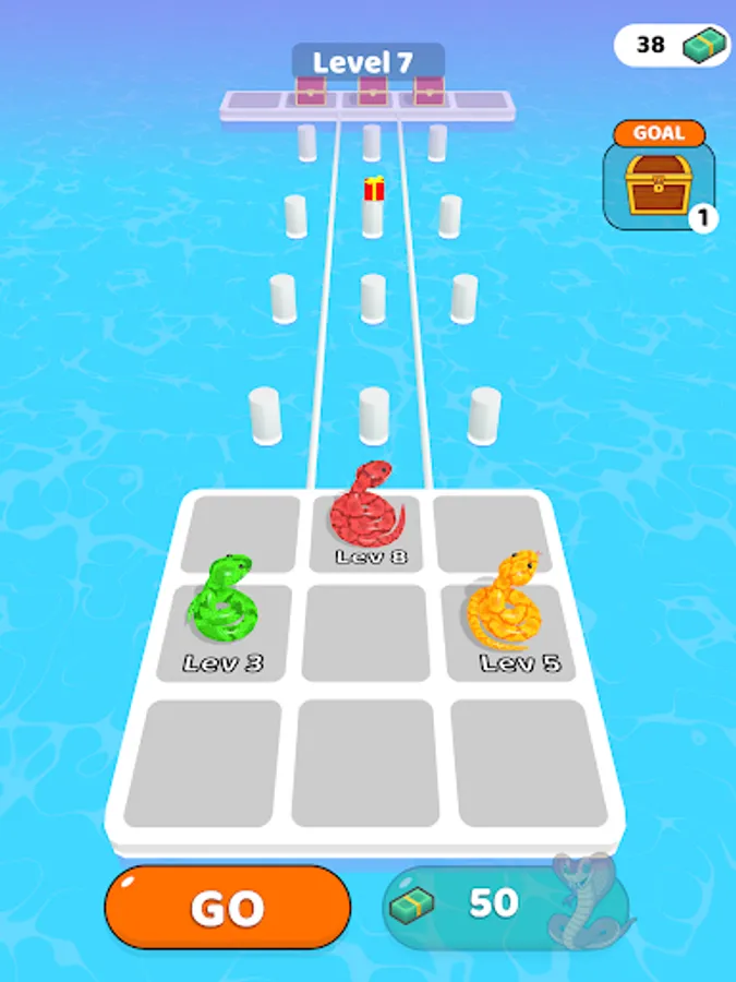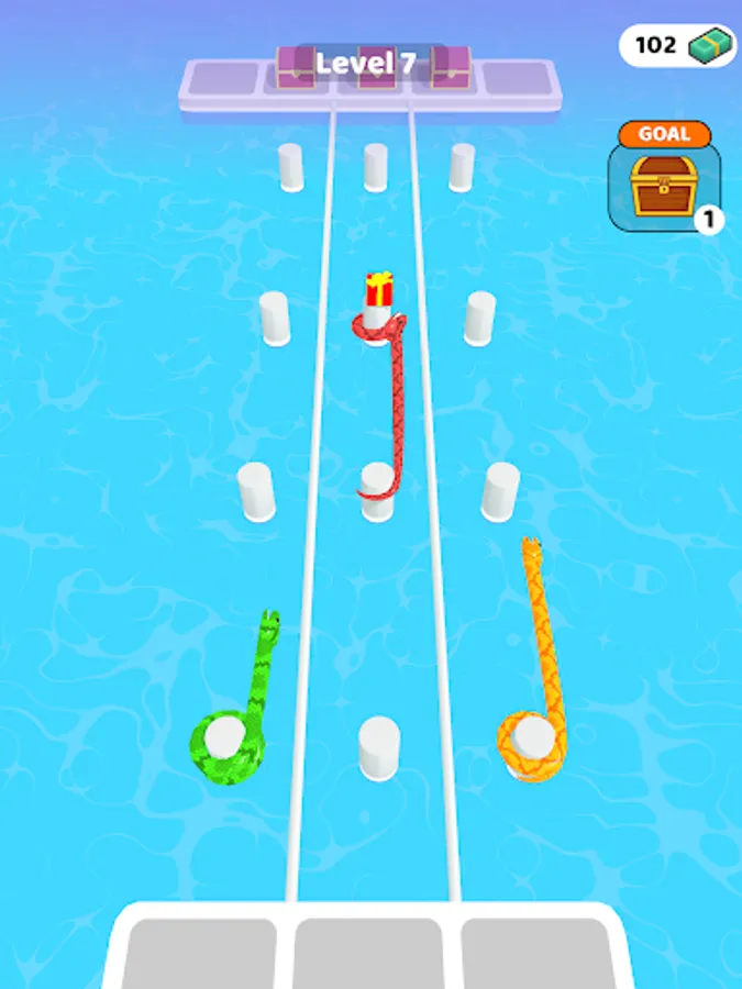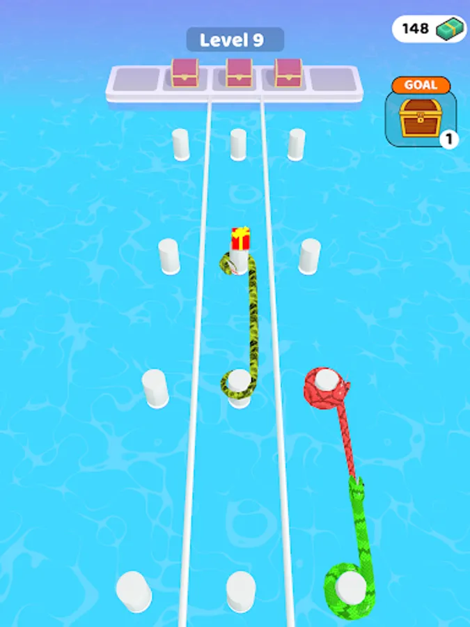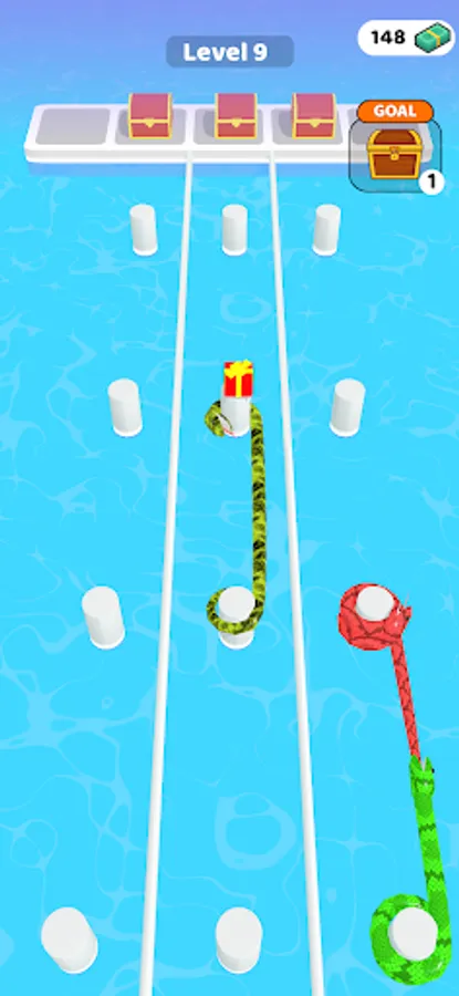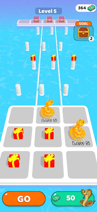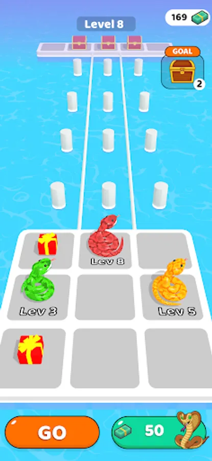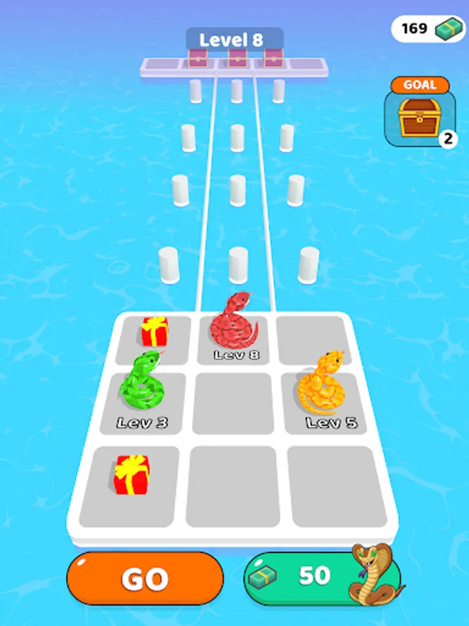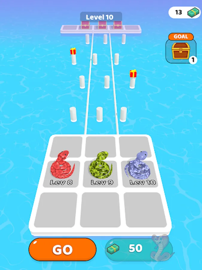 Merge and enlarge snakes. So reach the end of the road by collecting gifts