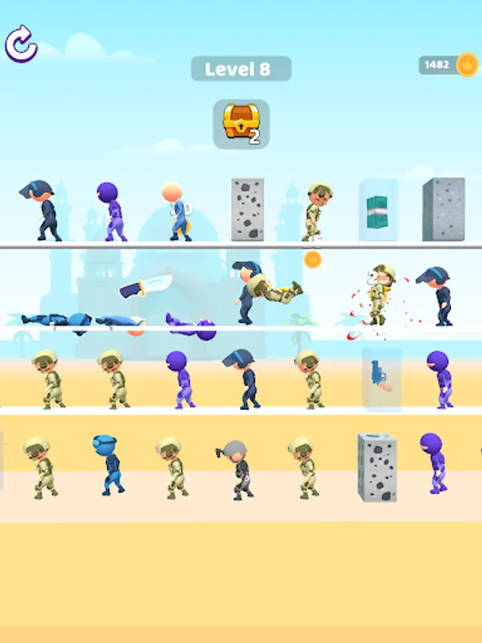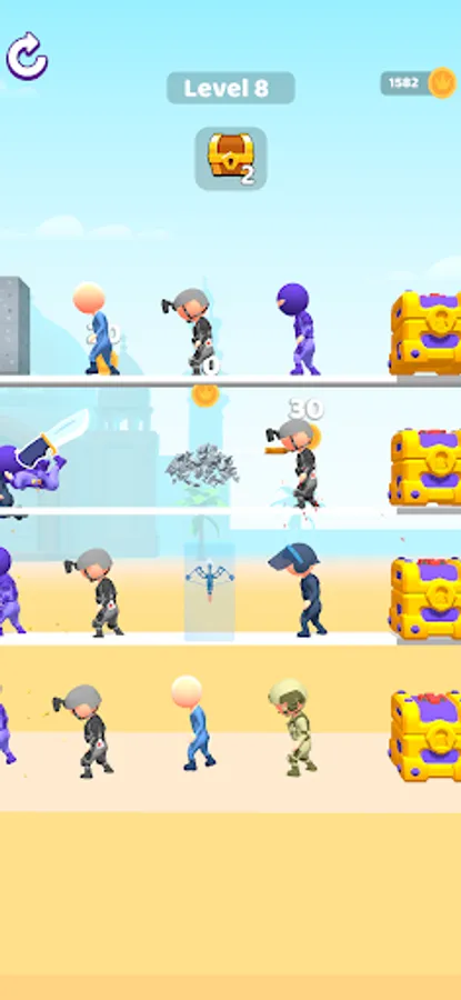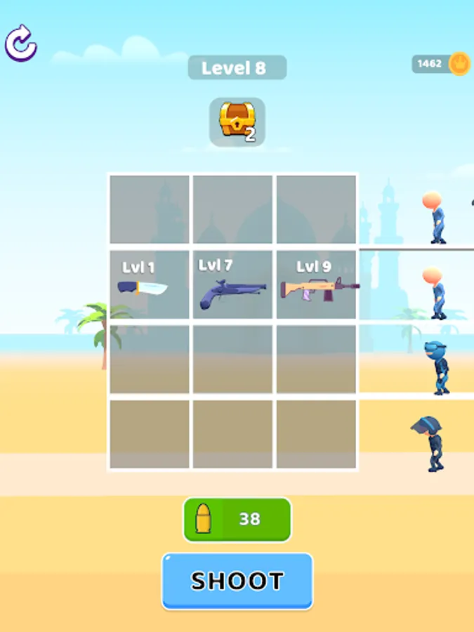 Merge weapons and get more powerful weapons. Kill all enemies in one hit