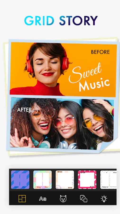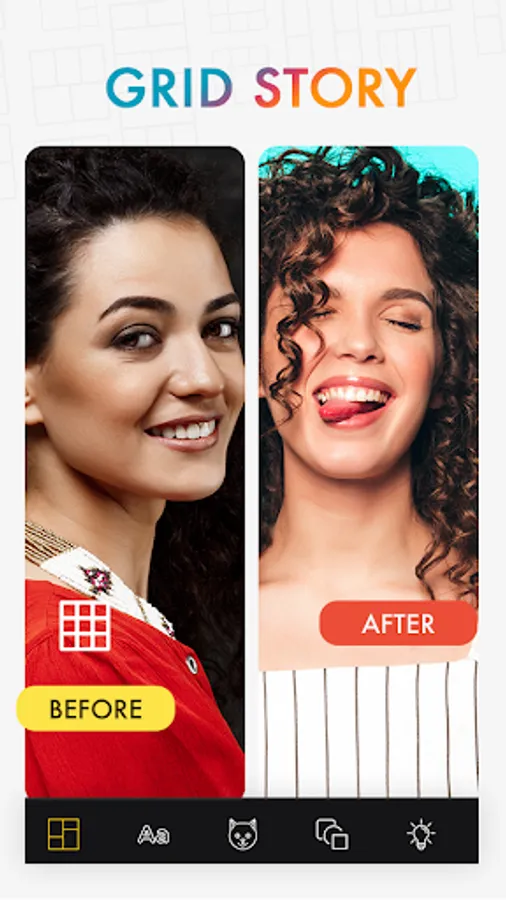 Do you want to create a collage where you can see yourself how you looked young and how you look now, then use this before and after collage. Many collage grids to choose from.