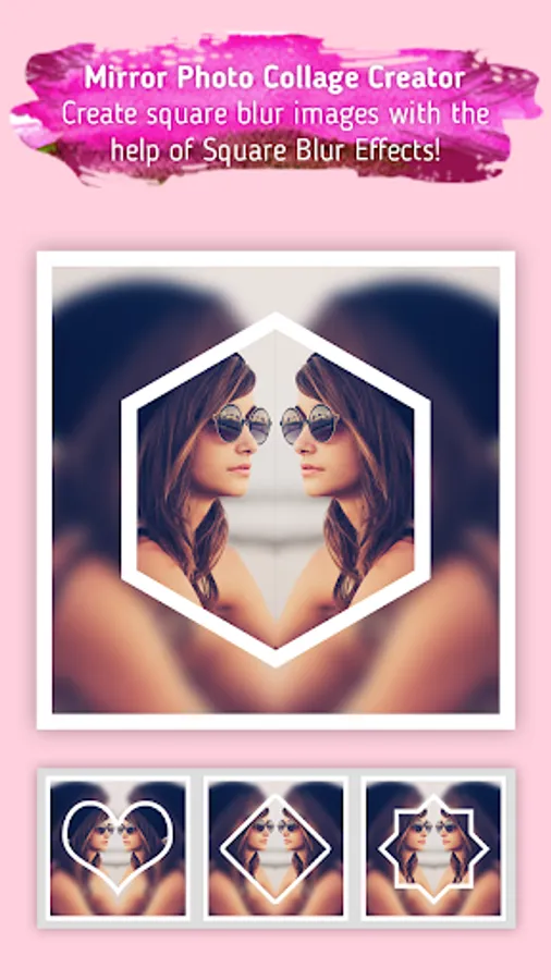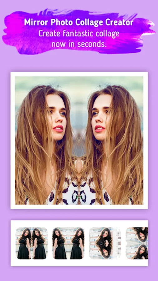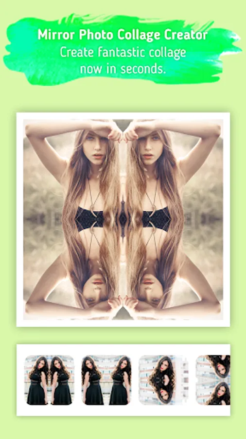 Create fantastic collage now in seconds. Press the shuffle button again to see the images in different collages. In mirror photo collage you can create left -right, up - down, reflection, and multiple reflection style images. Add square blur effect. This effect make the images blur so that you create square blur images.