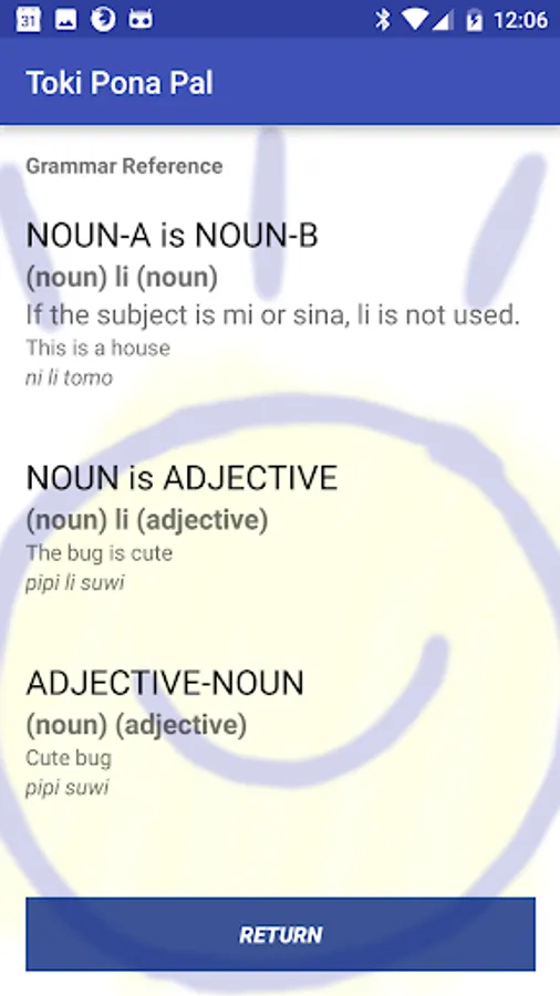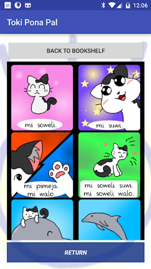 Learning toki pona? This app contains a dictionary, quizzing tool, and a few small comics with sample phrases you can use to get started.