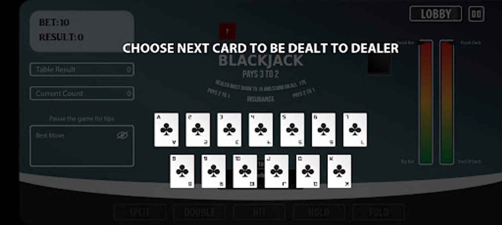 My BlackJack Trainer, learn to play blackjack and count cards.