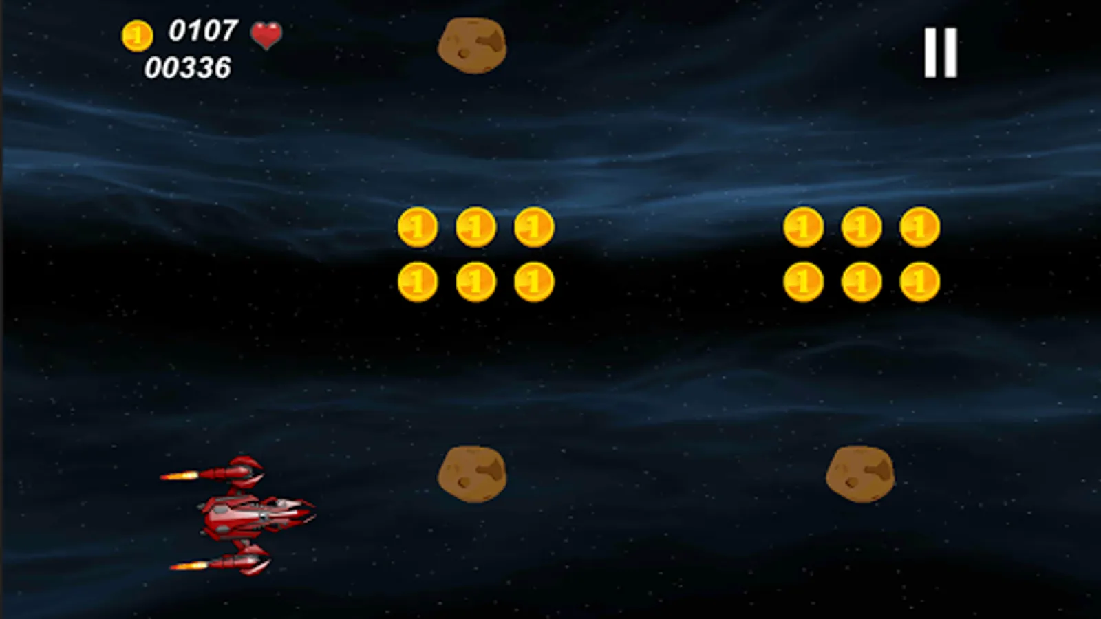 Tap the screen and move your Spaceship. Try to avoid the obstacles and complete the missions. Take the Coins and use the PowerUps like the Speed to move very fast, the Shield to survive the next impact once, the Sonic Blast to destroy the incoming obstacles and the Revive the get another chance. Special Audio and Graphic effects have been used.If you like it, please leave a positive review