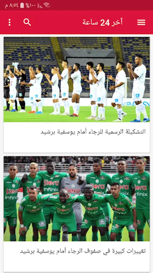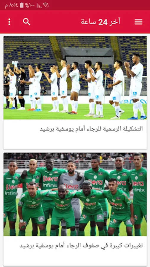 Latest news from Wydad Sports, the Royal Army, Raja Sports, Morocco Fassi, Morocco Tetouan, Hassania Agadir, Kawkab Marrakech, Union Tangier, Berkane Renaissance, Club Kenitra, Rabat Fath, Mouloudia, Olympique Safi, Youssoufia Berrechid, Jadida defense, Olympique Khouribga, Club Saree Valley Zem - only one application to follow the Moroccan and international football news
