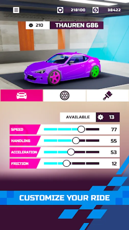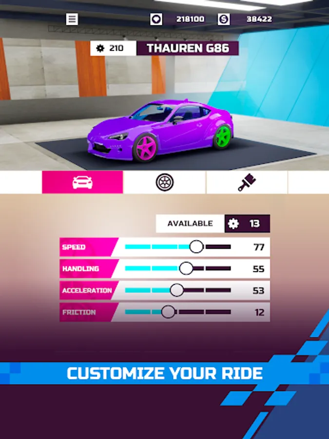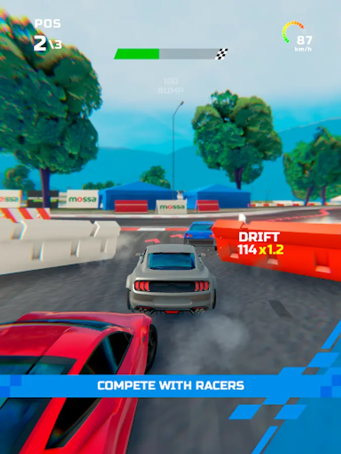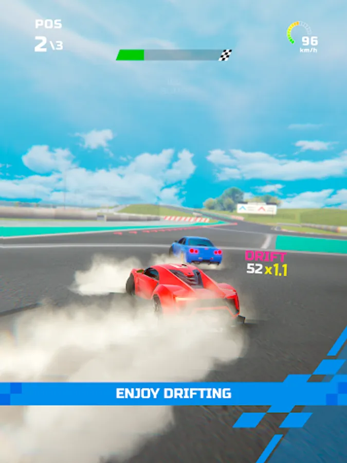 Competitive drift races with rivals. Customization and individual tuning. Excellent car physics and intuitive control with one finger, adjust the gas by pressing and holding, releasing your finger - the car slows down.